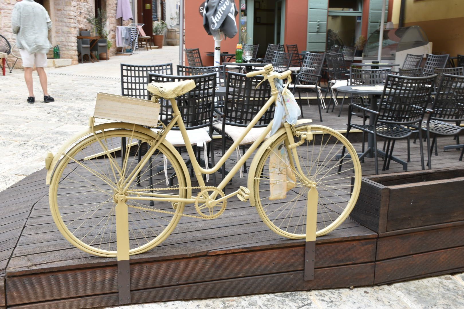 Google Maps kennt hier ja keine Radwege, aber wir mittlerweile die Umgebung, also haben wir uns für die langsamere, aber verkehrsärmere Variante entschieden. Statt 9 Kilometer Hauptstraße nur 5 km, vorher dafür Schotterpiste. Es hat sich gelohnt, die 5km Hauptstraße waren nicht wirklich schön und wenn dann noch Leute hupen, weil zu viel Gegenverkehr herrscht, kann man auch nur noch den Stinkefinger 🖕zeigen. Endlich angekommen, haben wir ein traumhaftes, verschlafenes Dorf vorgefunden. Es war Mittag, die Sonne kam raus und die Bilder mit blauem Himmel und tollem Licht sehen halt anders aus. Die Sonne war dann heute auch Mangelware, aber man hält es auch so gut aus 👍.