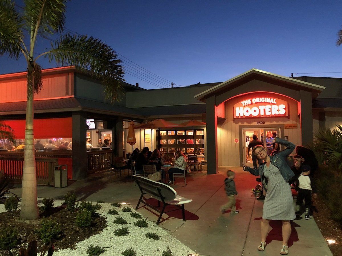 Wir wollten ja noch zu Hooters, dessen Keimzelle hier in Clearwater war (der Hooters am Clearwater Beach). Der Laden war nur 700 Meter weiter die Straße runter also konnte man das gut zu Fuß erledigen. Allerdings war die Strecke jetzt nicht besonders schön, so entlang einer 7spurigen Straße -die mittlere ist übrigens für die Linksabbieger in beide Richtungen.