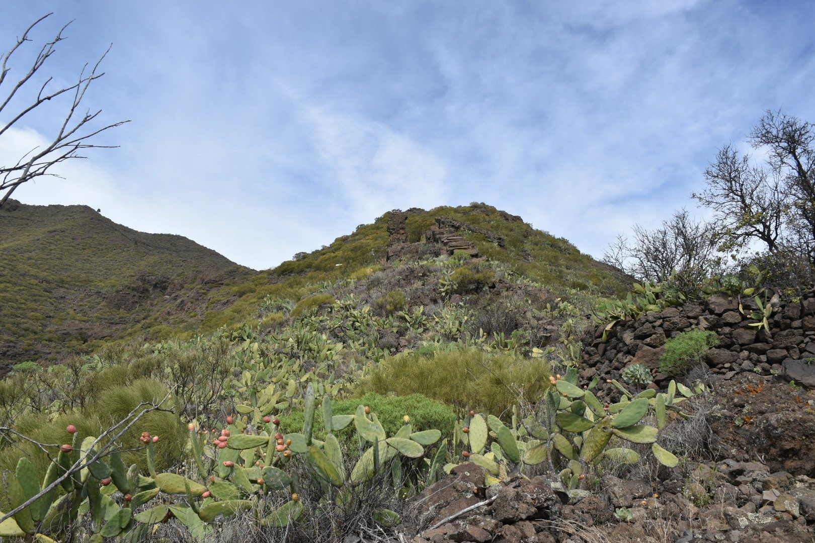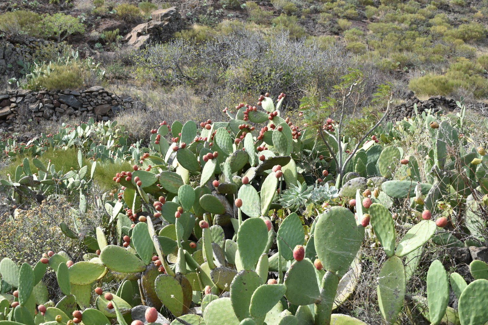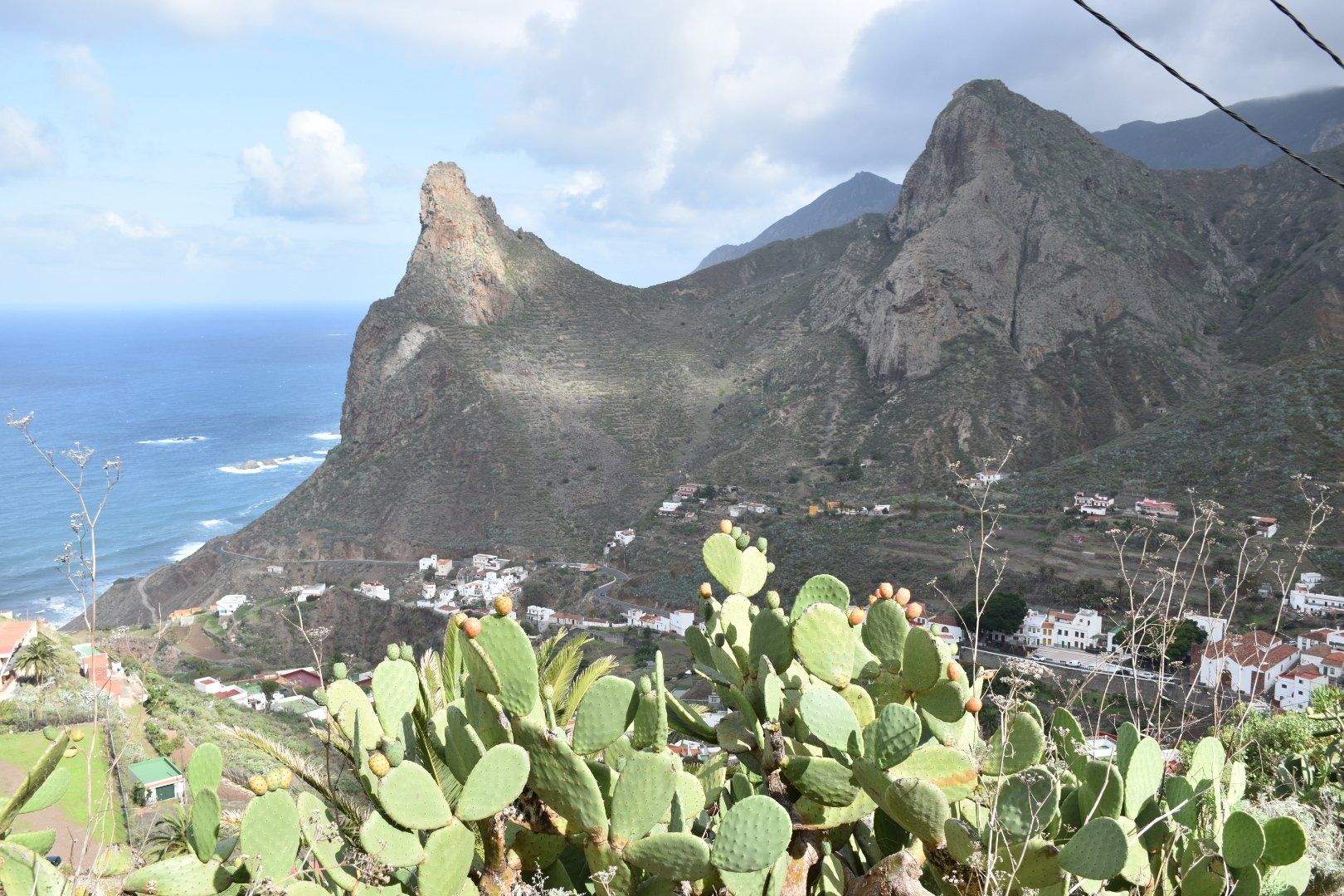 Wir sind dann zu dem Ausgangspunkt unserer heutigen Tour gefahren, so wie das Navi meinte. Es war sehr windig bei ca. 14 Grad, also Jacke übergezogen, Rucksack auf, Kamera bereit und los ging es Richtung Meer. Unterwegs war uns beiden zu warm, also Jacke aus. Irgendwie waren sich alle Mitstreiter, von denen es einige gab, nicht so richtig einig, was wohl die richtige Kleidung war. Die meisten Mitstreiter haben wir öfter getroffen und teilweise gemeinsam Pause gemacht und mit einigen auch ein paar nette Worte gewechselt, wie das so üblich unter Wanderern 🥾 der erste Teil der Wanderung war echt 👍 mit tollen Aussichten (siehe viele Bilder) und relativ entspannt mit einigen Passagen bei denen Höhenangst nicht so toll gewesen wäre. Es ging auf diesem „Höhenwanderweg mit tollem Panorama“ hoch und runter mit tollen Aussichten. Wenn man den Plan intensiver gelesen hätte, hätte man sich etwa 300 Höhenmeter (150 runter und 150 hoch) sparen können, dann aber auch kein Bier, keinen Salat und keine „Papas Arrugadas“ bekommen. Naja, nachher ist man immer schlauer, aber auch satter 😋