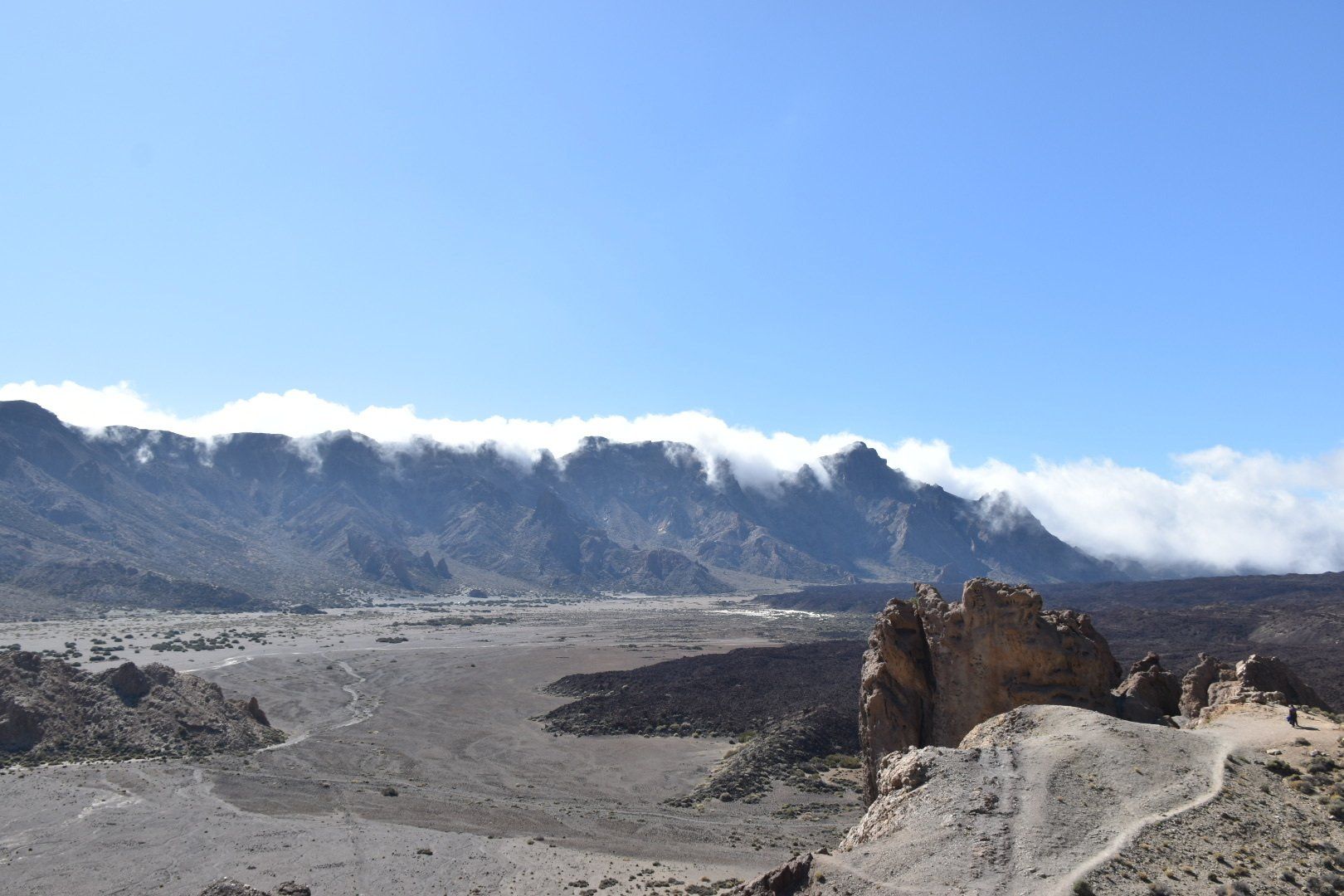 Das Problem war aber erst einmal einen Parkplatz zu finden. Da es unten wohl überall regnete, sind alle auf das Plateau gefahren, schon krass, wie viele Menschen dann auf einmal dort oben sind. Letztendlich standen wir knapp vor der Hauptstraße gerade noch in der Parkzone und alles war gut. Die Runde war echt toll und die Felsen sahen schon klasse aus und immer wieder konnte man auf den Teide von der Südseite aus schauen 👀