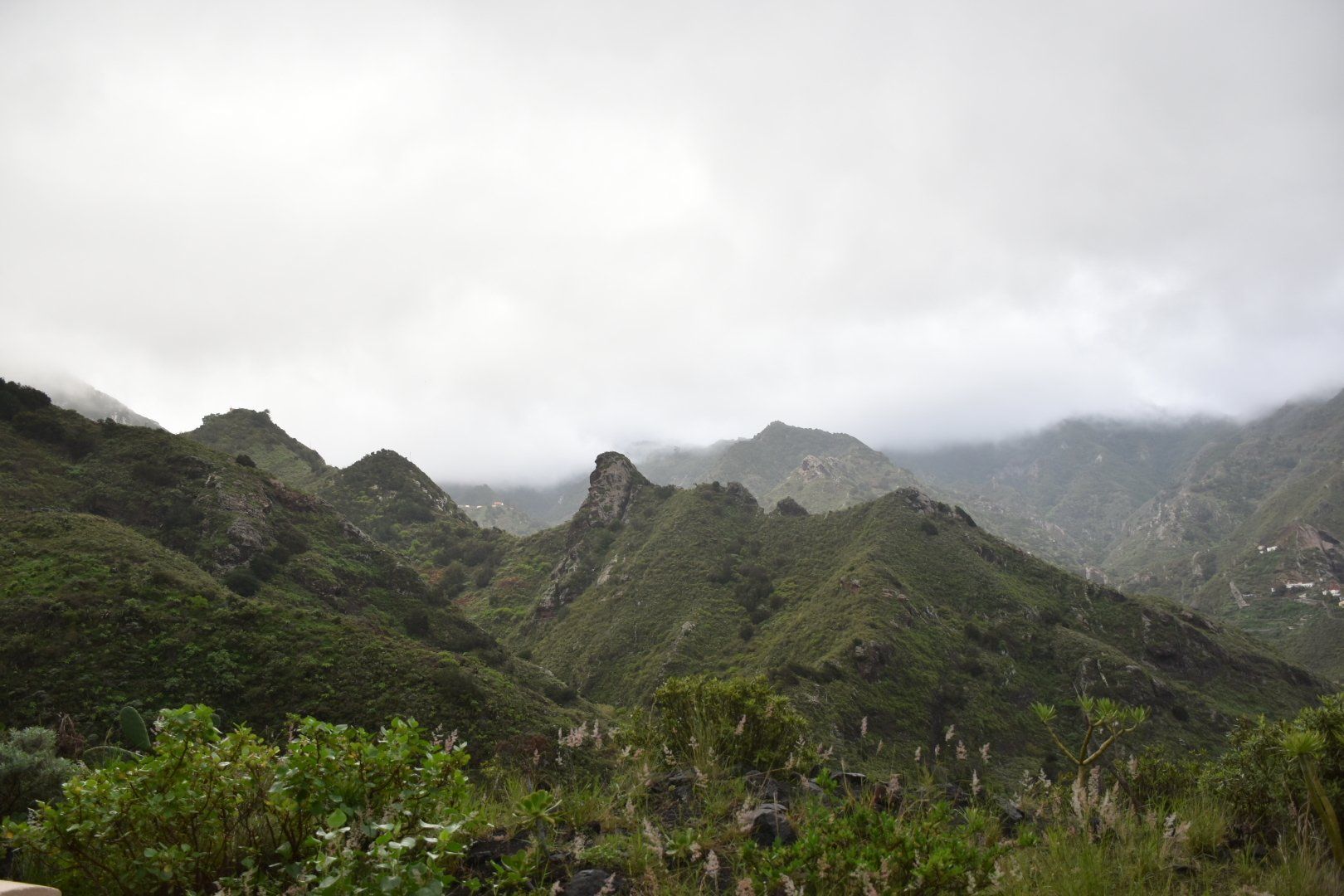 Wir sind also fast völlig umsonst die Serpentinen zunächst hoch und dann wieder runter gefahren. Ich kann mich nicht erinnern, wann ich schon einmal so eine lange Strecke nur im ersten Gang gefahren bin. Zunächst hoch, weil der zweite die Kehren nicht schaffte und dann runter um die Bremsen nicht zu sehr zu strapazieren. Juliane hat zwar ein paar kurze Clips gemacht, aber ihr war echt übel bei der Sache 🤢 aber es ist nochmal gut gegangen. Der Ort Masca, klein und völlig überlaufen. Wir haben noch einen Parkplatz bekommen um eine halbe Stunde später enttäuscht wieder abzufahren. Dass man sich um unseren Platz nicht gekloppt hat war schon ein Wunder 😁
