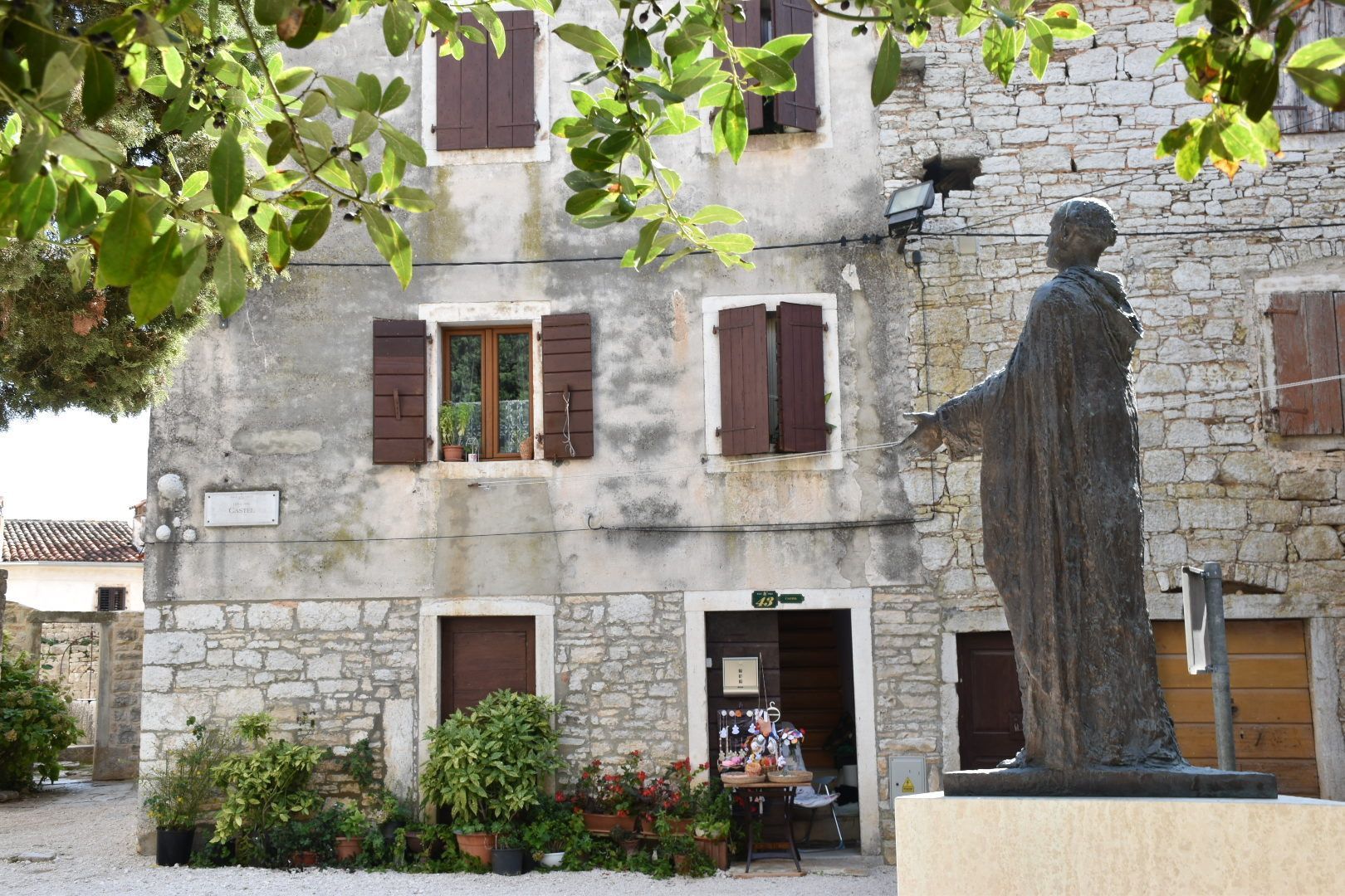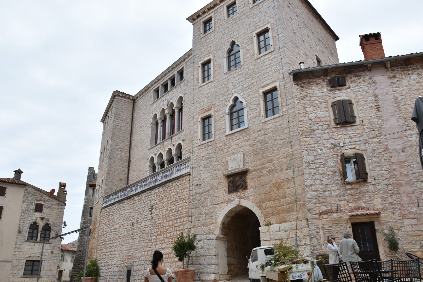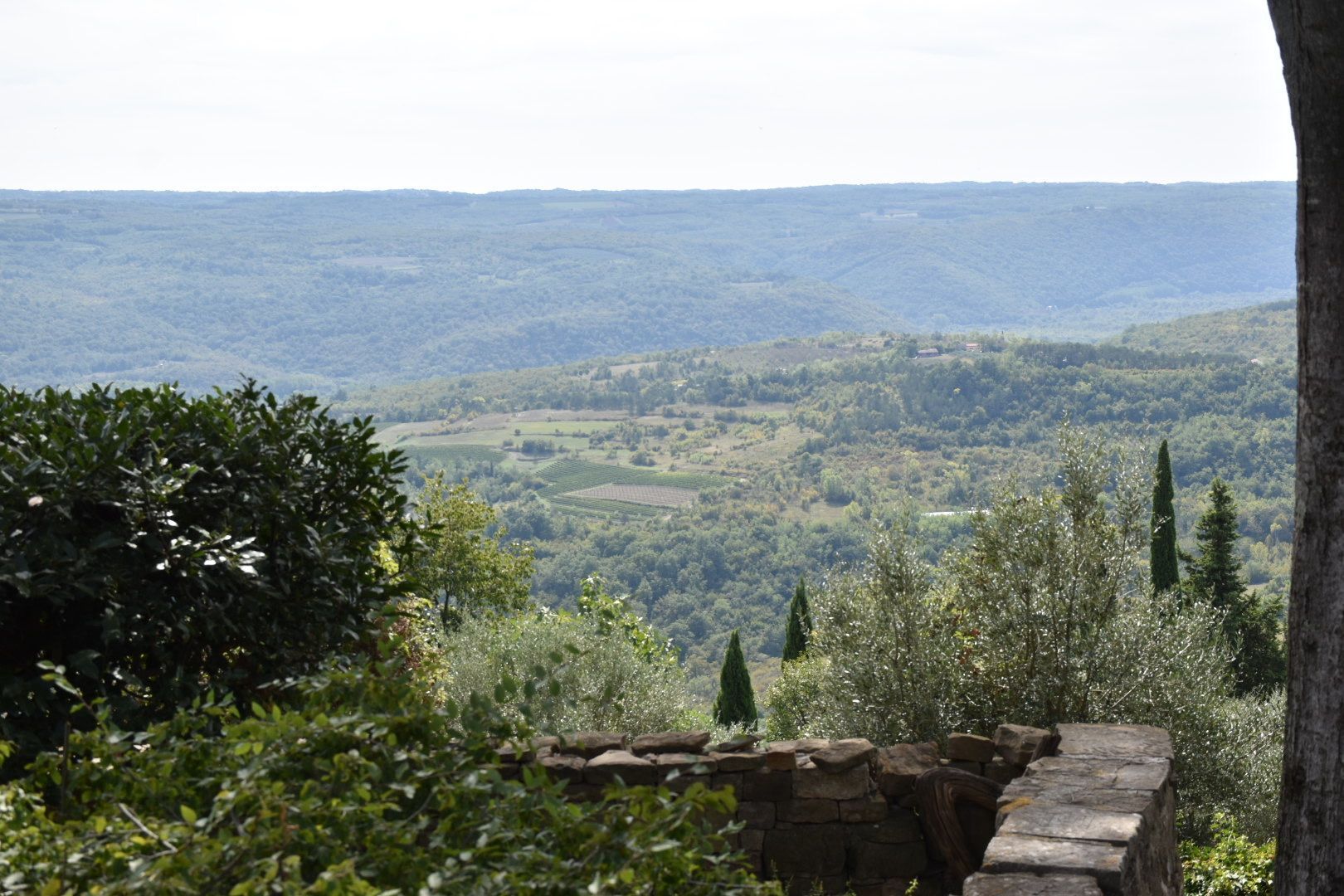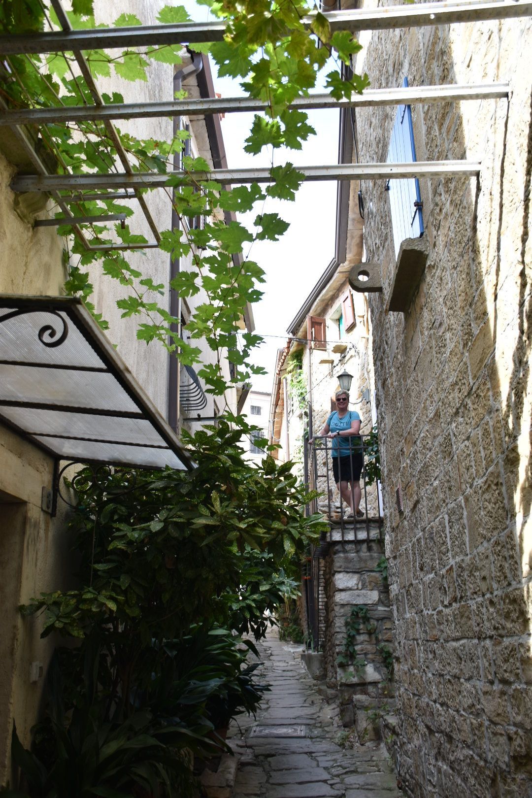 Erstes Ziel sollte wieder Groznjan sein (Wiederholungstäter 😏), das früher verfallene Dorf, das durch Künstler wieder aufgebaut wurde. Wir waren diesmal 2 Stunden später dran als im letzten Jahr. Diesmal war es recht gut besucht und alle Restaurants waren ebenfalls geöffnet. Wir haben uns einen Italiener mit tollem Ausblick ausgesucht und auf der Speisekarte stand glutenfreie Pizza. Juliane und ich haben uns eine Pizza und Insalata Caprese bestellt. Juliane fand die Pizza auch gut, sodass beide satt und zufrieden waren.
