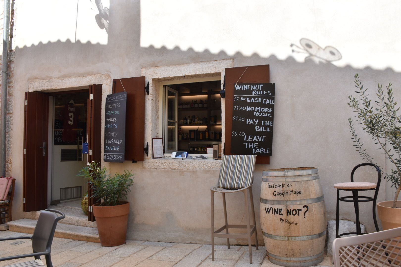 Wir sind dann durch das Dorf geschlendert und haben ein schönes Plätzchen zum Verweilen gefunden „WineNot“.