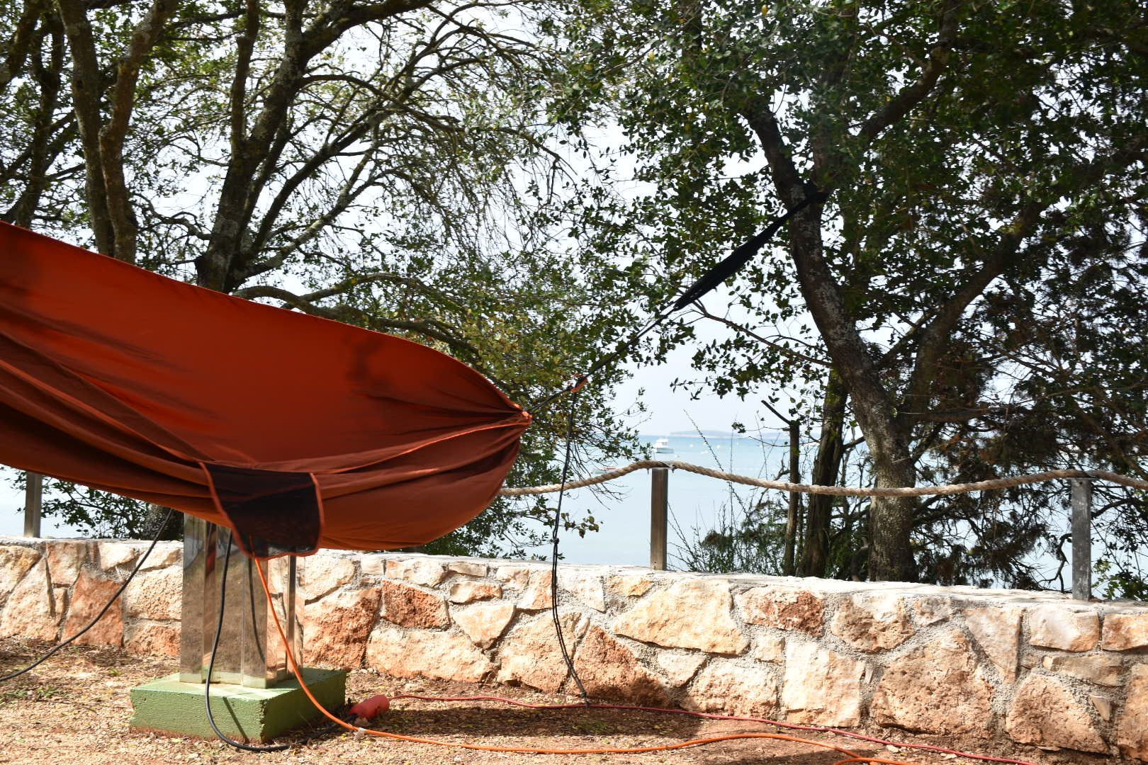 Als Nächstes haben wir dann die Hängematte zwischen zwei perfekt aufgestellten Bäumen aufgespannt. Ich durfte als Erster rein und habe versucht zu schlafen, klappte aber nicht, der Wind und die Wellen haben mich nicht schlafen lassen. Juliane hatte mehr Glück, sie hat fast eine Stunde in der Hängematte geschlafen.