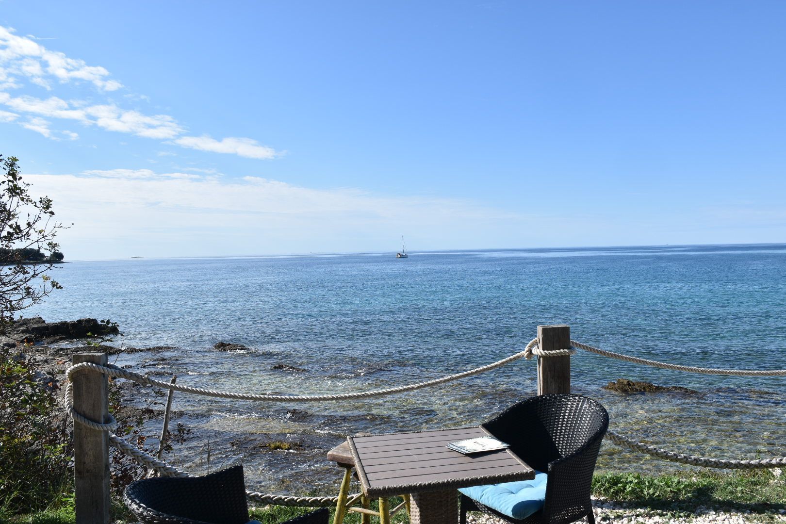 Es ist jetzt gerade kurz nach sieben, alles ist gespült und wir sitzen entspannt mit Blick aufs Meer.