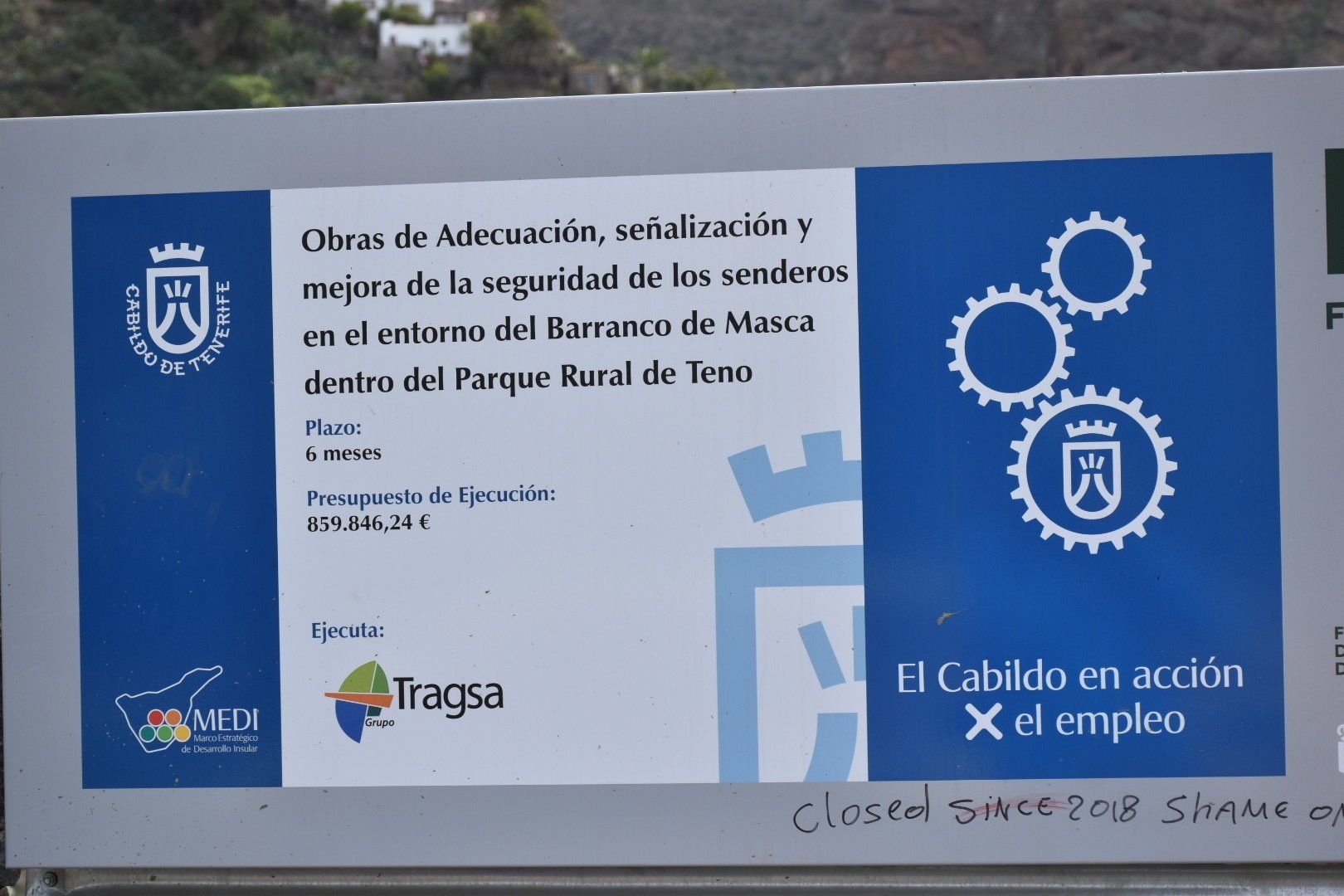 Heute früh waren wir wirklich schon früh unterwegs, nach dem Frühstück schon vor 10 Uhr auf den Weg gemacht, wir wollten in die Masca Schlucht eine atemberaubende Wanderung machen. Leider war der Weg durch ein großes Schild gesperrt und ein Kommentar auf dem Schild machte deutlich, dass die Schlucht schon seit über einem Jahr gesperrt ist. Hätte man ja mal auf der Seite von Komoot oder beim Rother Wanderführer anmerken können 😡