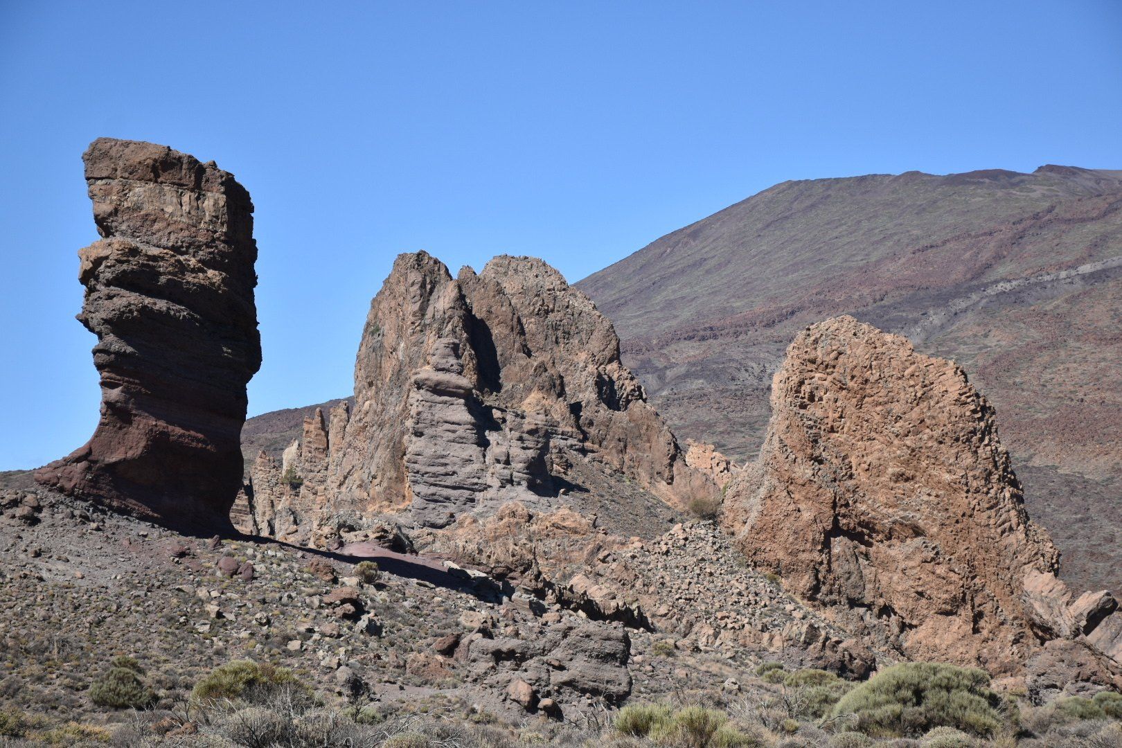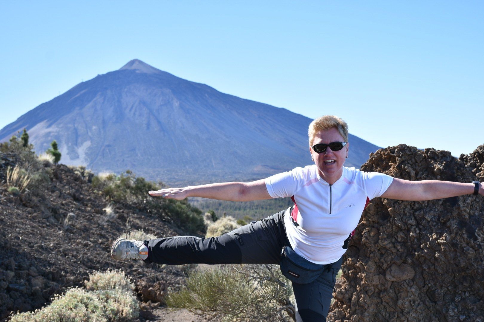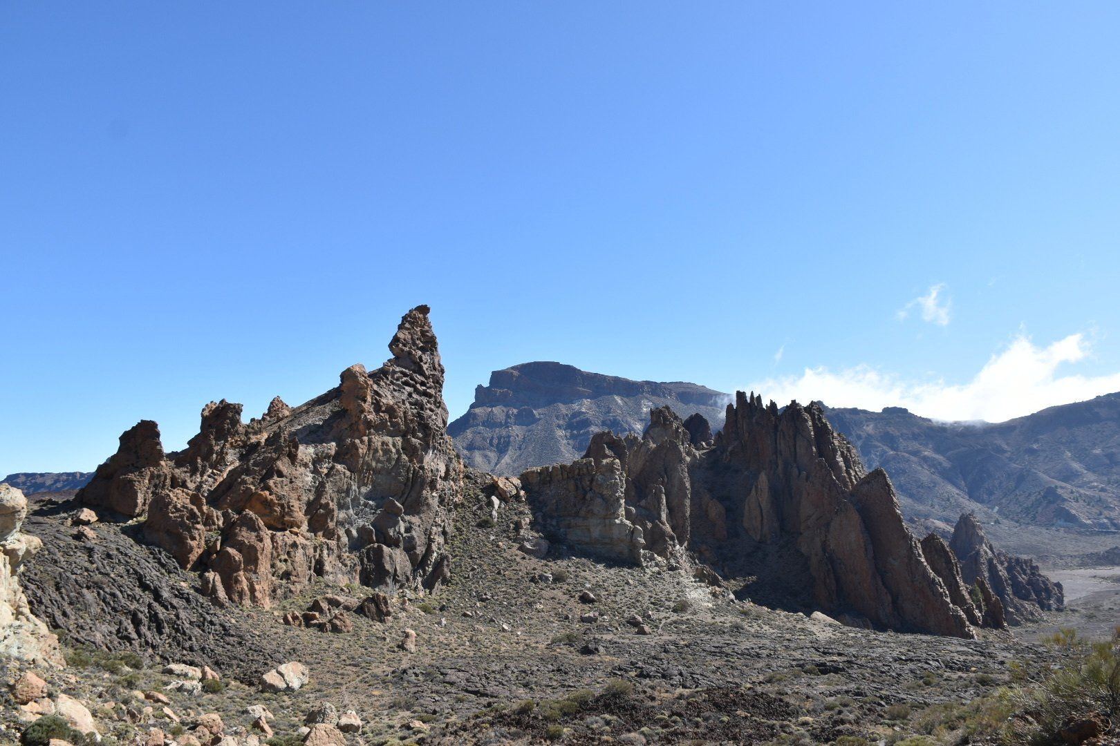 Das Problem war aber erst einmal einen Parkplatz zu finden. Da es unten wohl überall regnete, sind alle auf das Plateau gefahren, schon krass, wie viele Menschen dann auf einmal dort oben sind. Letztendlich standen wir knapp vor der Hauptstraße gerade noch in der Parkzone und alles war gut. Die Runde war echt toll und die Felsen sahen schon klasse aus und immer wieder konnte man auf den Teide von der Südseite aus schauen 👀