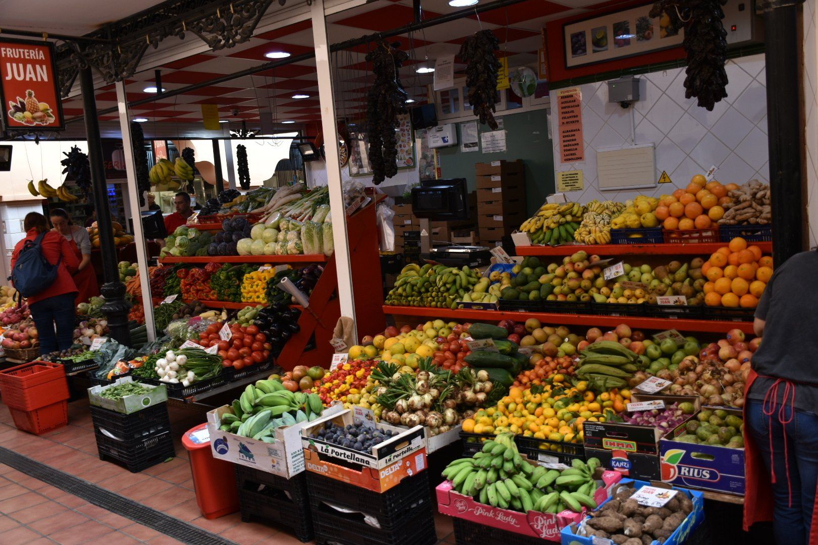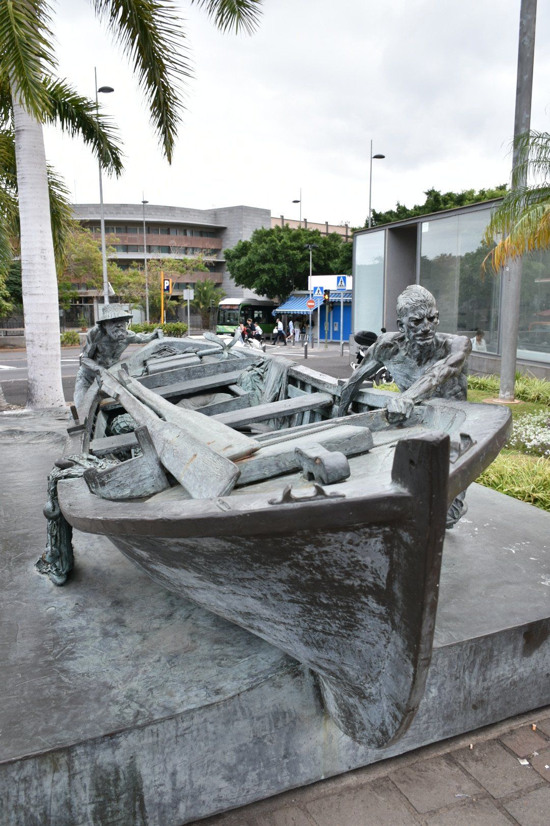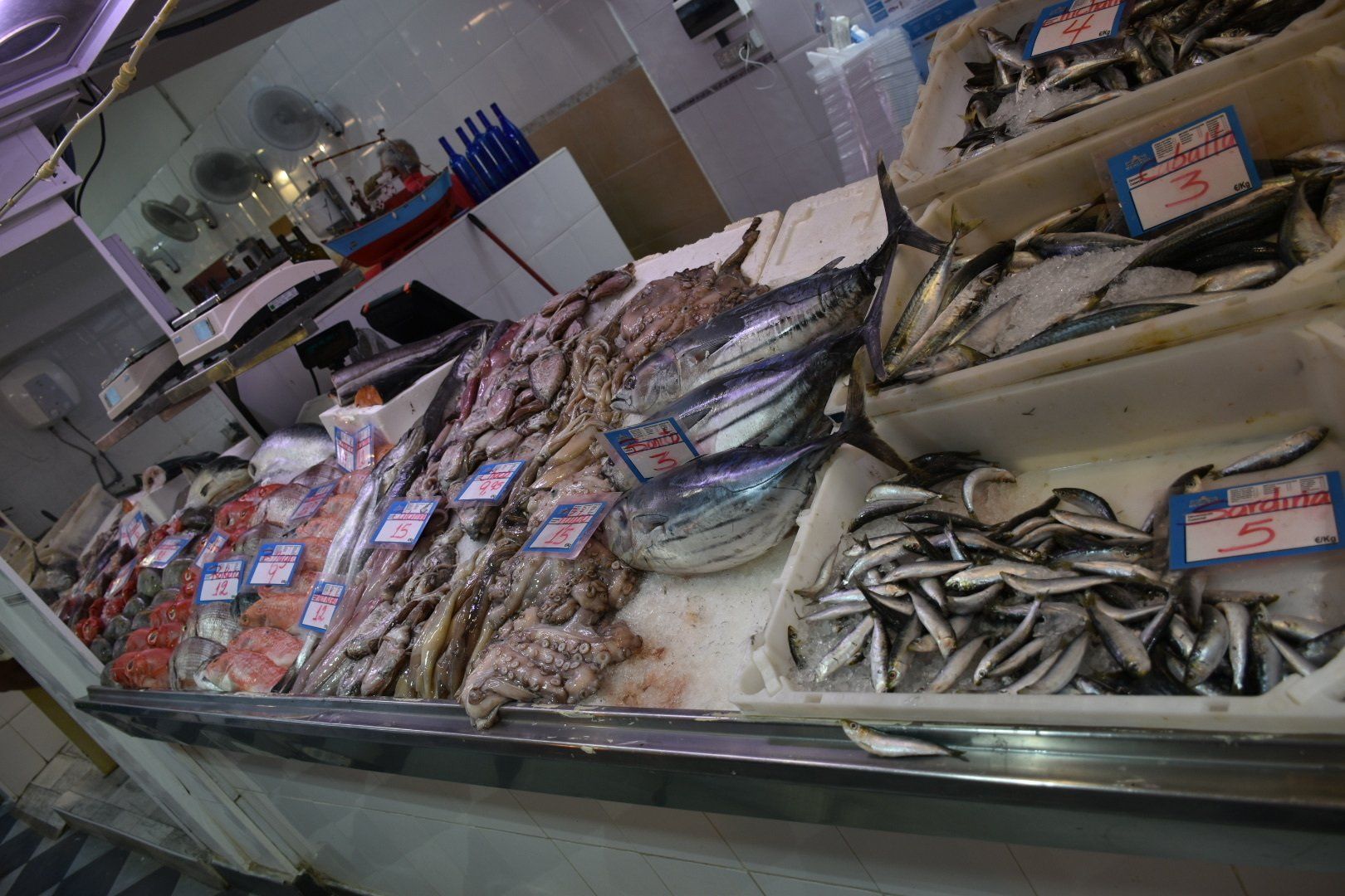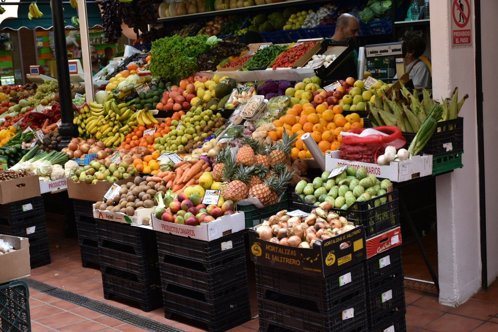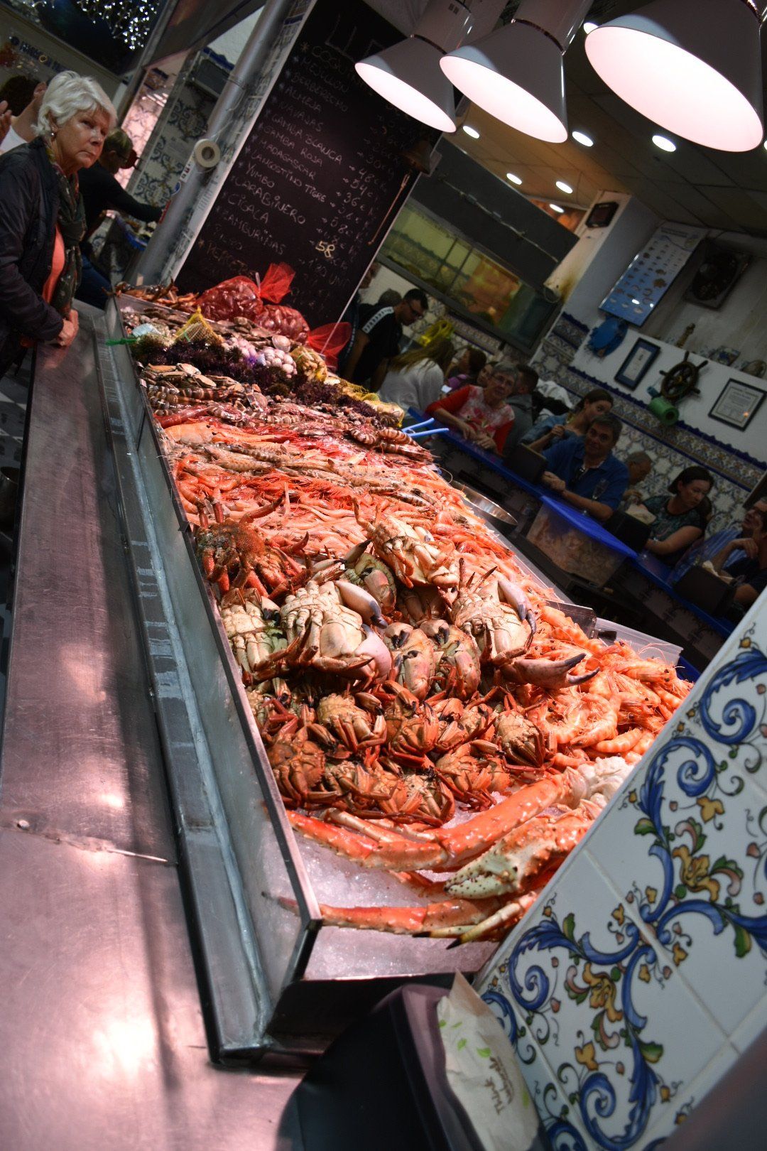 Direkt am Busbahnhof ins Parkhaus gefahren und dann Richtung Plaza de Espana gelaufen. Besonders schön ist die Stadt ja nicht, eine Mischung aus alten schönen Gebäuden (meist besetzt mit Regierungsbeamten) und 60er - 70er Jahre Bauten ohne Charme. Wir sind dann die Rambla hochgelaufen vorbei an allen Geschäften, die man auch bei uns in den Fußgängerzonen finden kann. Wir hatten aber keine Kaufabsichten, also haben wir auch nirgends reingeschaut. Danach durch einen schönen Park geschlendert mit einer Pause in einer Straßenbar. Es fing dann tatsächlich wieder an zu regnen, aber das ging glücklicherweise schnell vorbei. Wir wollten uns auf jeden Fall noch den Markt anschauen, eine große zweistöckige Markthalle mit vielen Leckereien. Am meisten beeindruckt mich immer die Fischhalle mit den vielen verschiedenen Arten. Gegessen haben wir hier allerdings nichts.