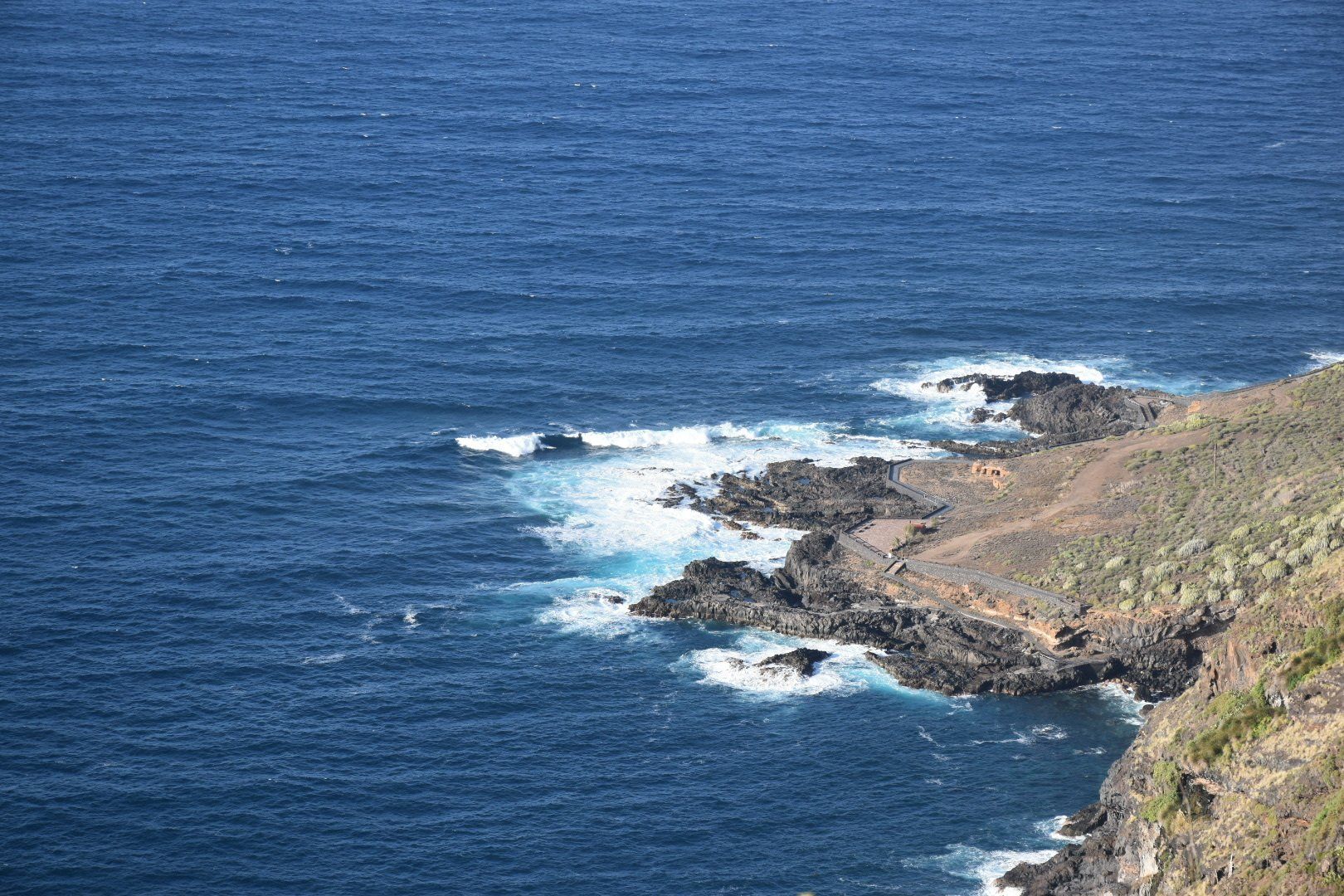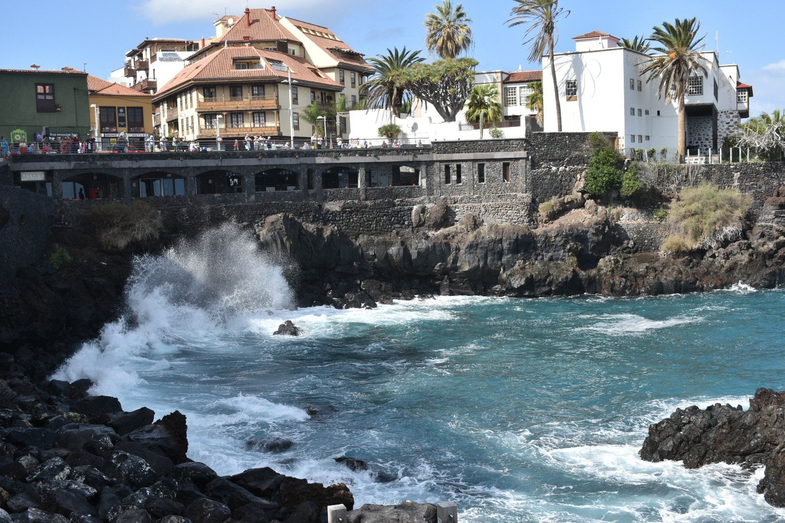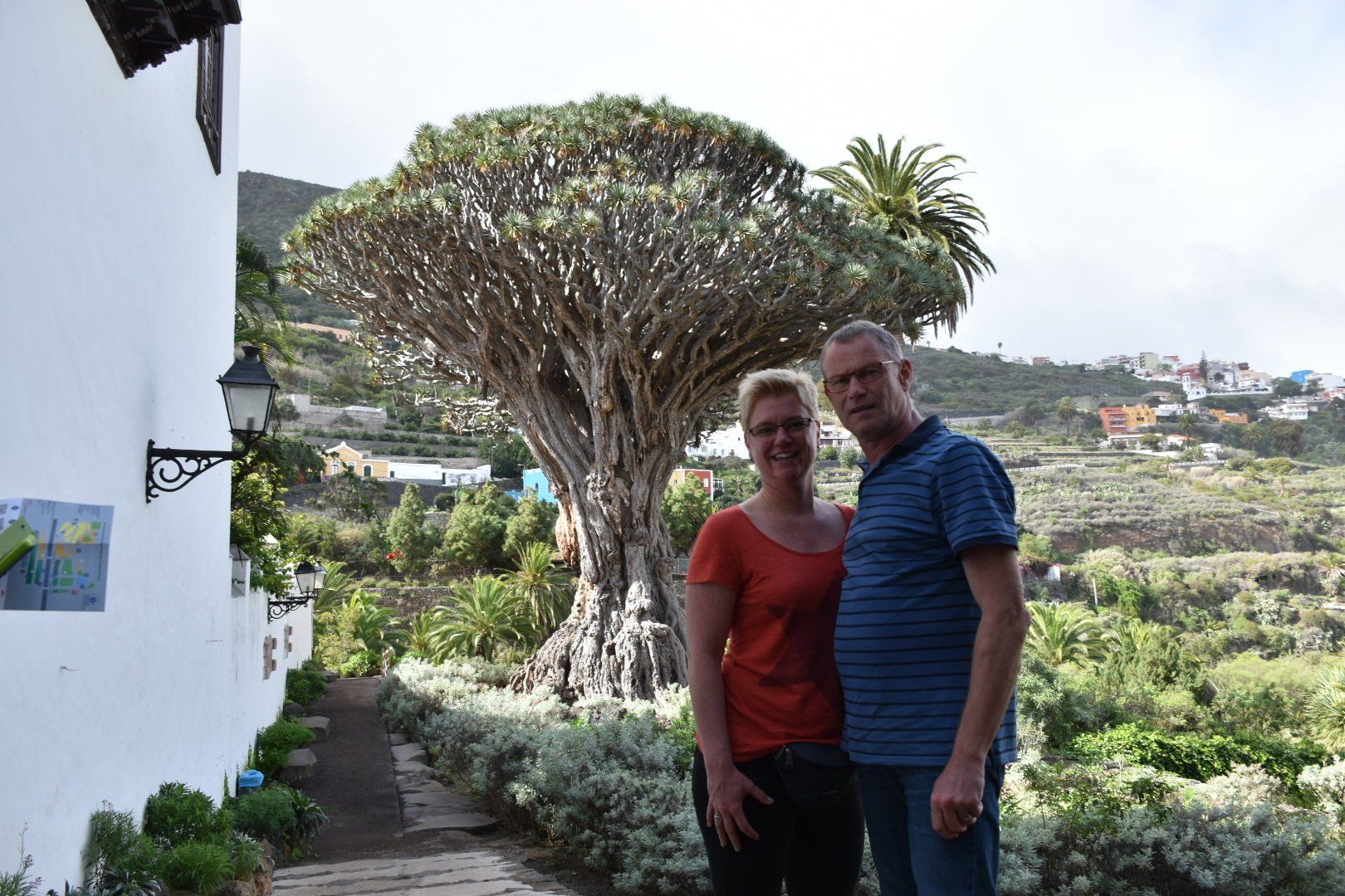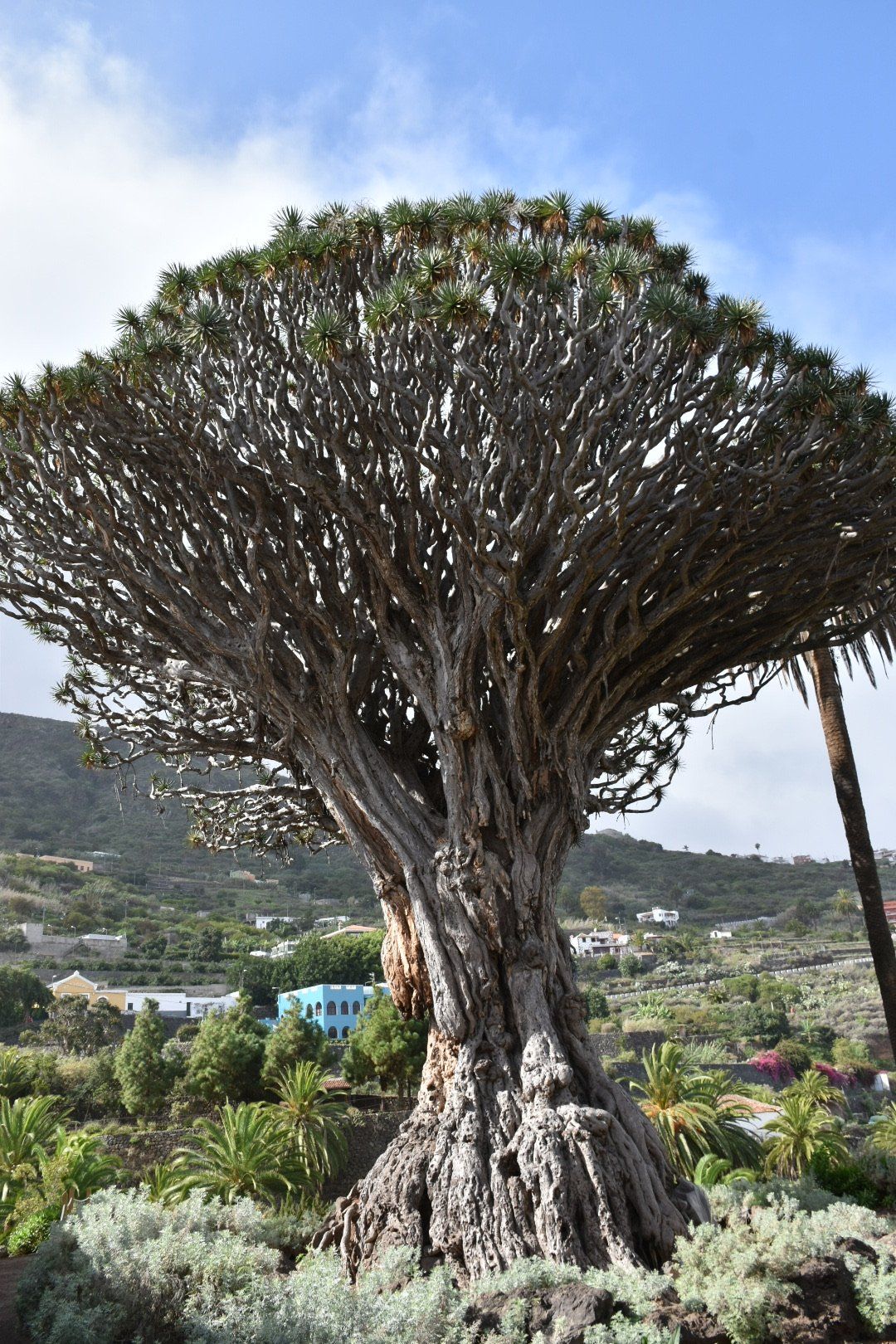 Heute morgen sind wir bei Regen losgefahren und jetzt sitzen wir wieder bei Regen auf dem Balkon, bzw. sind gerade in die Wohnung geflüchtet. Zwischendurch als wir unterwegs waren, war das Wetter aber gut mit Sonne ☀️ und Wolken ☁️. Wir sind erst einmal nach Icod de los Vinos gefahren, wo der berühmte Drago Milenario steht. Er ist zwar erst ca. 600 Jahre alt aber der wohl älteste Drachenbaum der Welt. Man hat drumherum einen schönen Botanischen Garten gemacht, mit allem was die Kanaren an Flora zu bieten hat. Es lohnt wirklich und die 5 € Eintritt zahlt man dann gerne. In der angeschlossenen „Casa del Drago“ einem Café konnte man gut entschleunigen und einen leckeren Wein für wenig Geld trinken. Wir sind dann noch ein wenig durch den Ort geschlendert und haben uns dann auf den Weg nach Garachico gemacht. Auch ein schöner kleiner Ort direkt an der Küste mit ein paar Restaurants einem schönen Platz, einer nette Kirche und spektakulären Badegelegenheiten, die allerdings gesperrt waren. Wenn man auf die Bilder schaut versteht man warum.