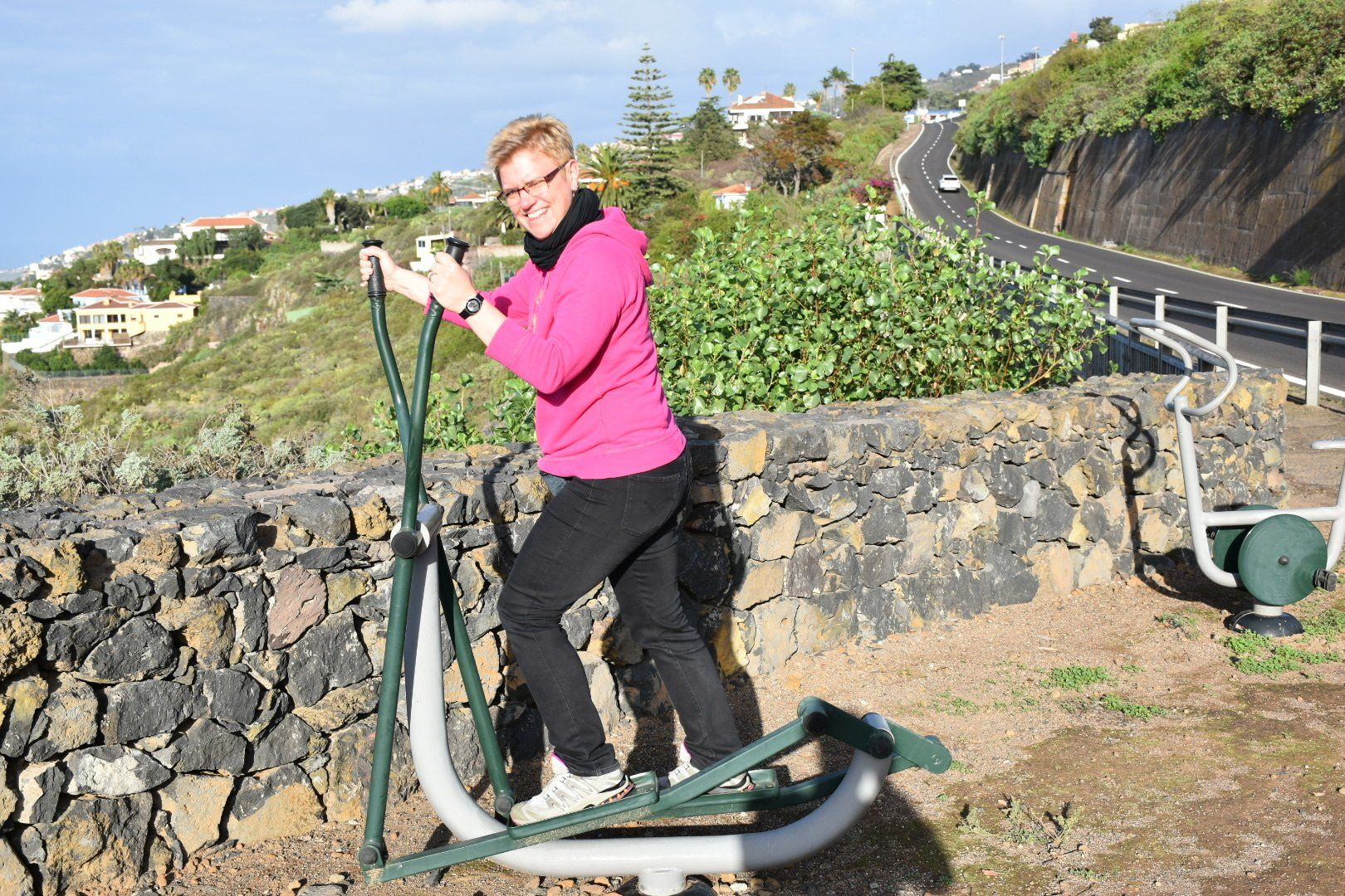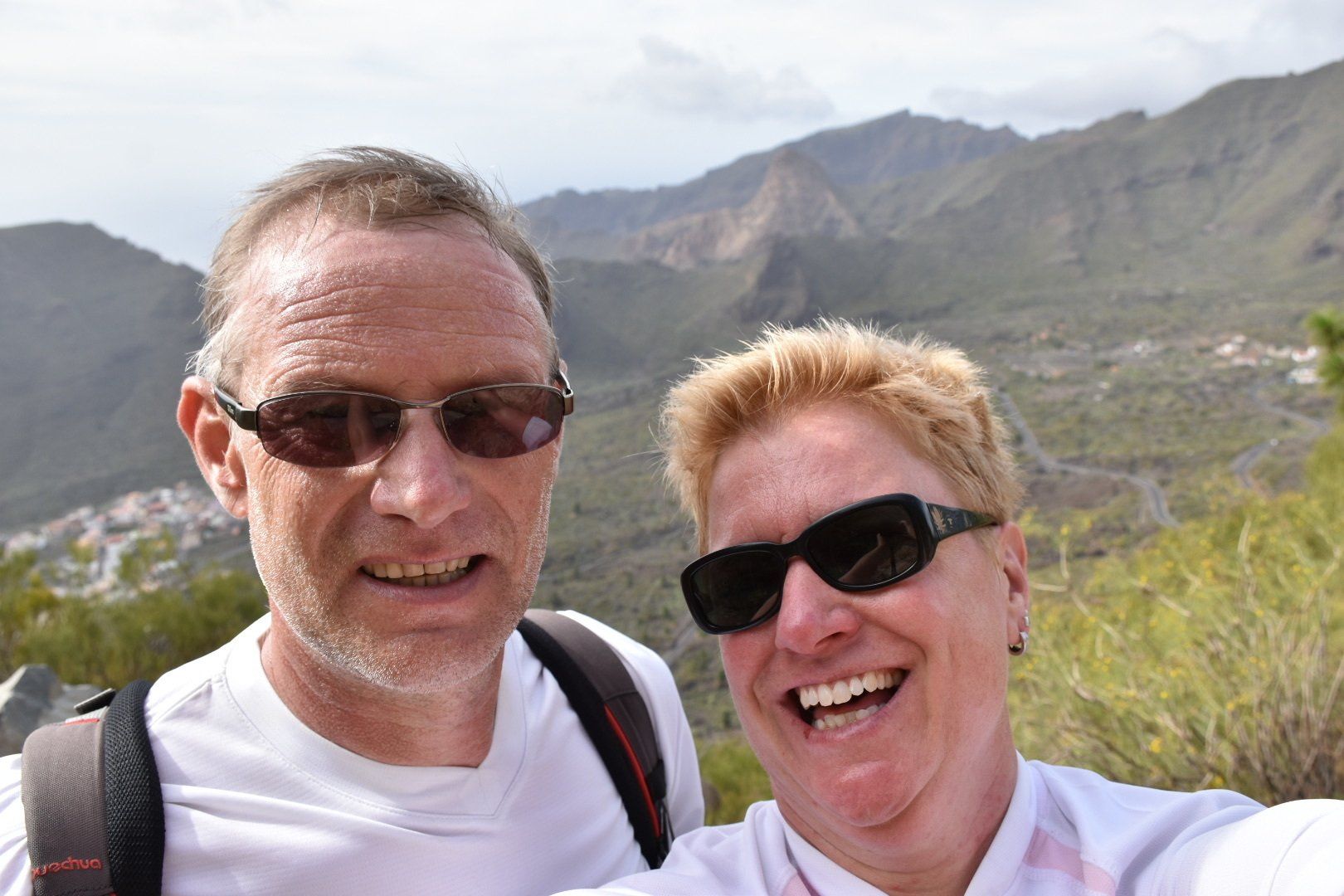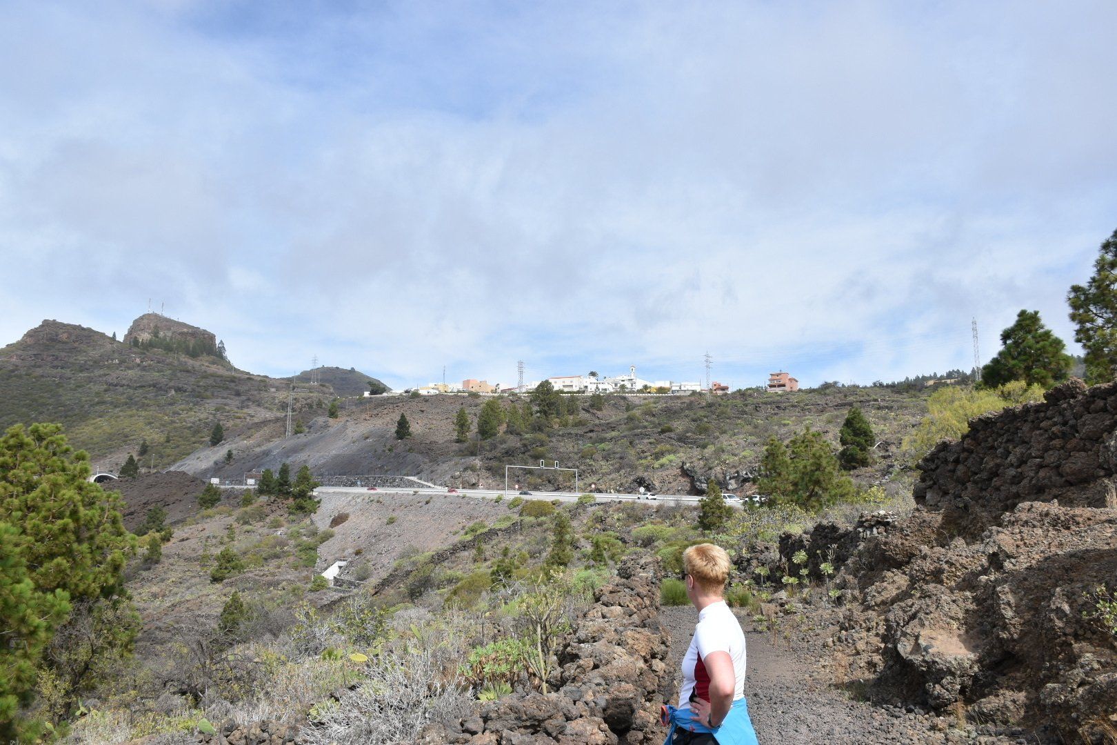 Wir sind von Santiago der Teide über Tamaimo dann steil bergauf nach Arguayo „geklettert“ über roten und schwarzen Lava-Schotter um dann bergab wieder zum Ausgangspunkt zu kommen. In Arguayo wollten wir ein wohlverdientes Zwischenbier trinken, aber alles war zu und die Straße gesperrt wegen Teerarbeiten. Weil ich keinen Kilometer Umweg machen wollte, wir waren schon echt platt, habe ich mich mit einem Bauarbeiter angelegt, der nach heftigem Wortgefecht auf Englisch aufgegeben hat 😡
