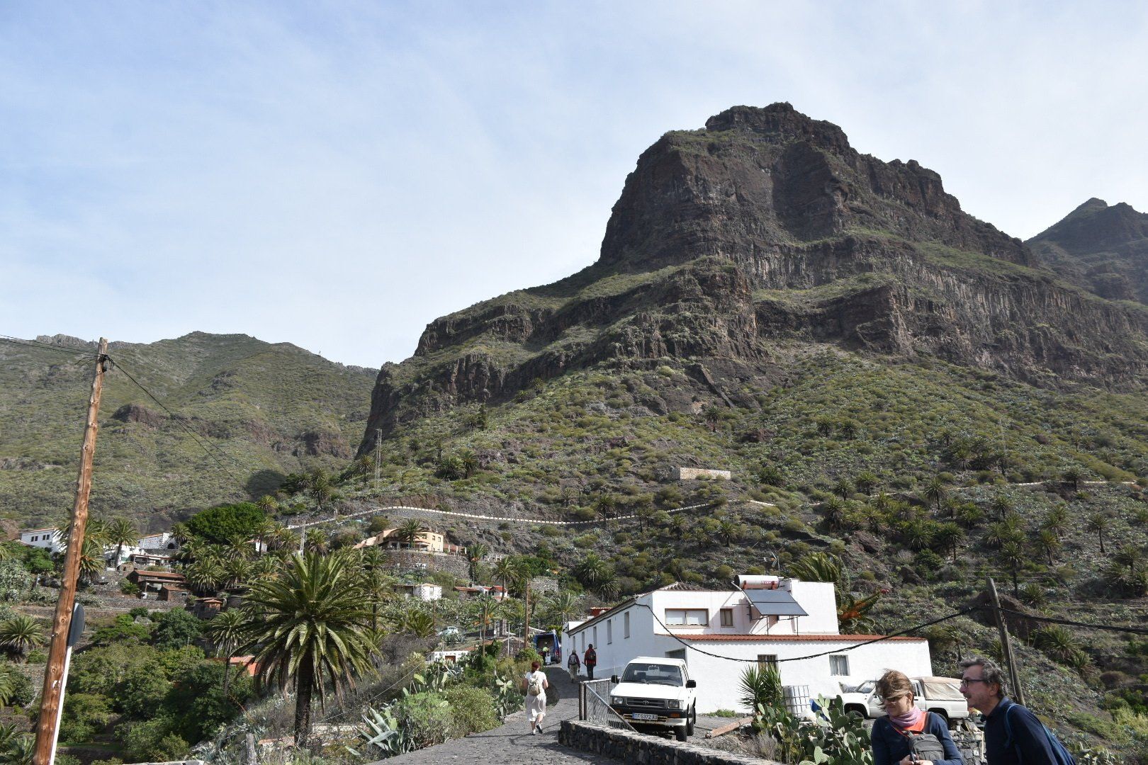 Wir sind also fast völlig umsonst die Serpentinen zunächst hoch und dann wieder runter gefahren. Ich kann mich nicht erinnern, wann ich schon einmal so eine lange Strecke nur im ersten Gang gefahren bin. Zunächst hoch, weil der zweite die Kehren nicht schaffte und dann runter um die Bremsen nicht zu sehr zu strapazieren. Juliane hat zwar ein paar kurze Clips gemacht, aber ihr war echt übel bei der Sache 🤢 aber es ist nochmal gut gegangen. Der Ort Masca, klein und völlig überlaufen. Wir haben noch einen Parkplatz bekommen um eine halbe Stunde später enttäuscht wieder abzufahren. Dass man sich um unseren Platz nicht gekloppt hat war schon ein Wunder 😁