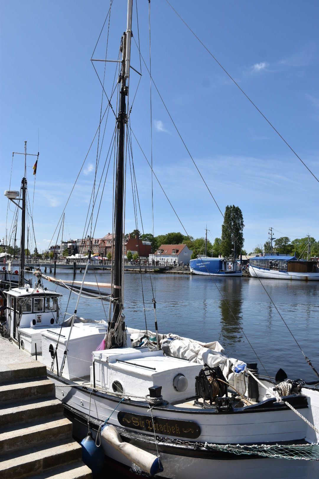 Wir hatten ein kleines Hüngerchen und wollten uns noch die Beine vertreten und etwas von Greifswald sehen. Ein schöner alter Hafen mit vielen Bars und einem Schiff wo man ein paar Pommes essen konnte.
