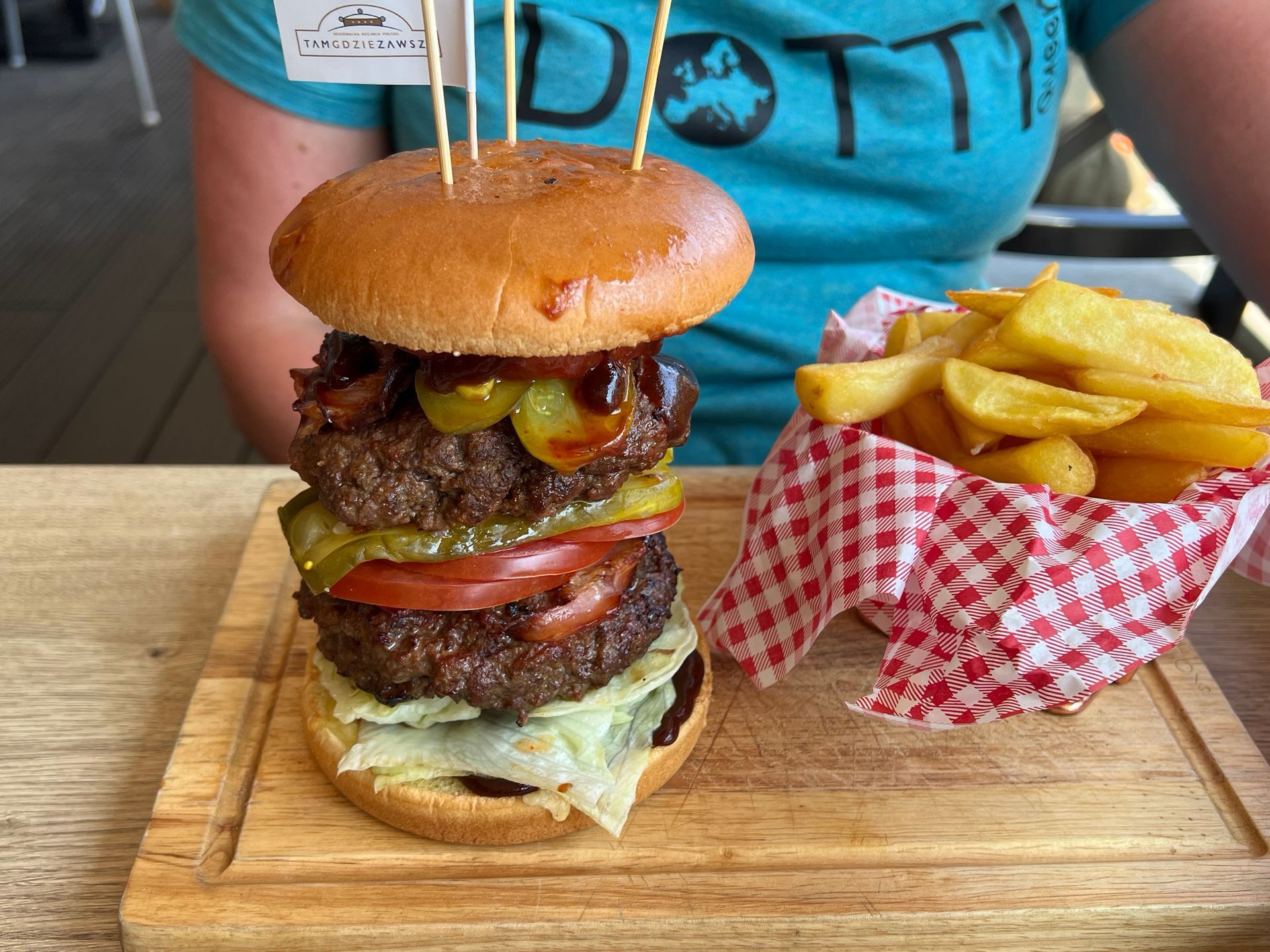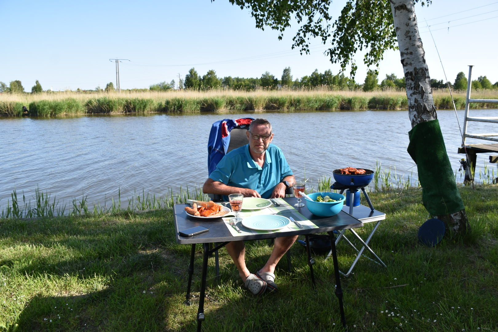 Alles unkompliziert bei der Anmeldung auf dem Platz, direkt am Fluss Leba. Platz am Flussufer 👍bekommen. Mal sehen, was die Mücken dazu meinen. Wir sind dann mit den Rädern in das Städtchen gefahren, sehr nett und haben ausgiebig und lecker am frühen Nachmittag gegessen. Bilder vom Essen ist eigentlich out, aber ich musste sogar Juliane bei Ihrem Burger helfen und bei den Pommes.