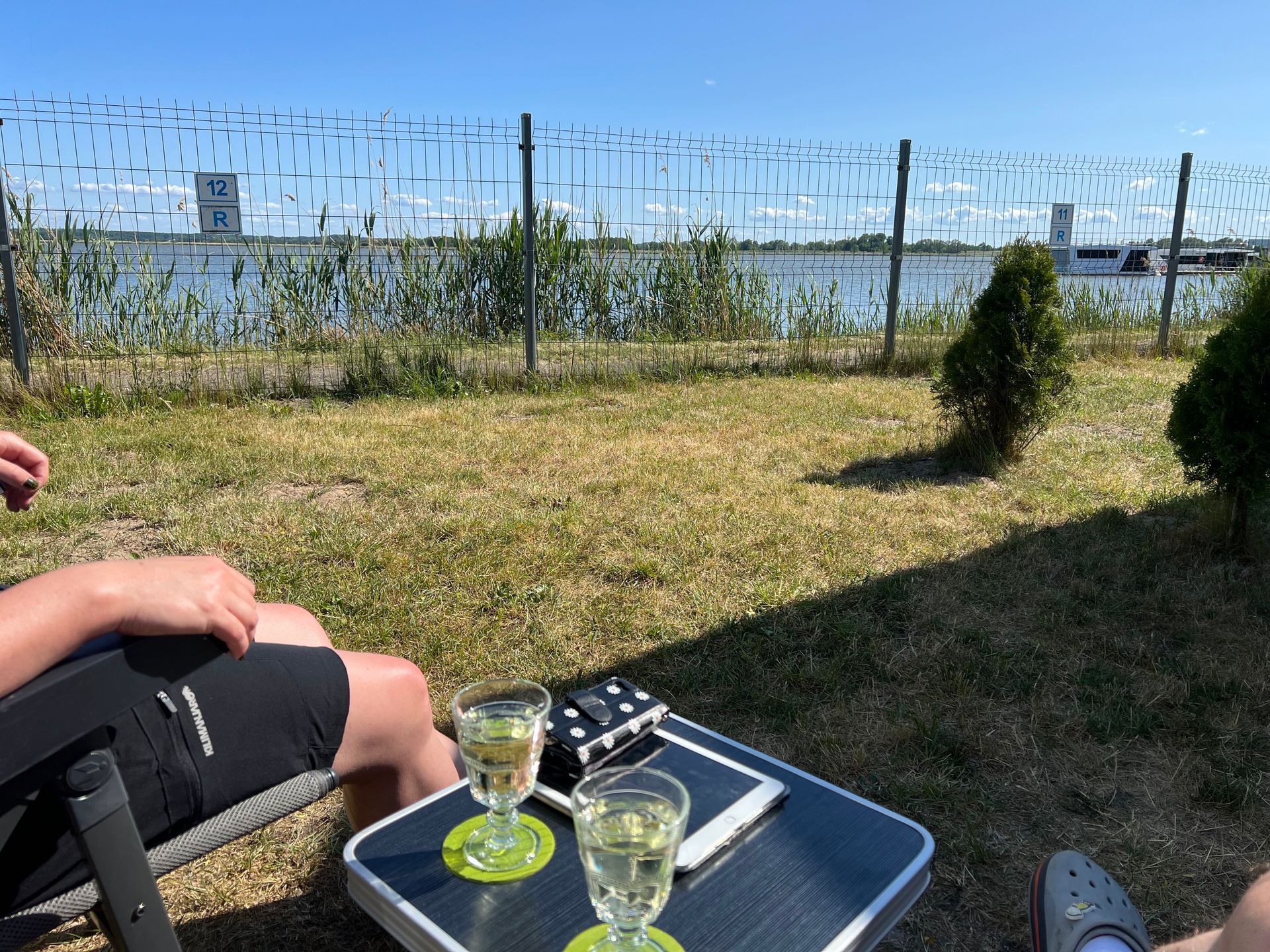 Dann über die Peene-Brücke nach Usedom und bis Koserow zu unserem Tagesziel / Campingplatz für die nächsten zwei Nächte. Teppich, Tisch und Stühle raus, die Markise abgespannt und noch ein bisschen ausgeruht, ist ja Urlaub ☀️. Es war etwas windig und frisch, wenn man nicht in der Sonne stand, also mit langen Ärmeln aber kurzer Hose aufs Rad 🚲.