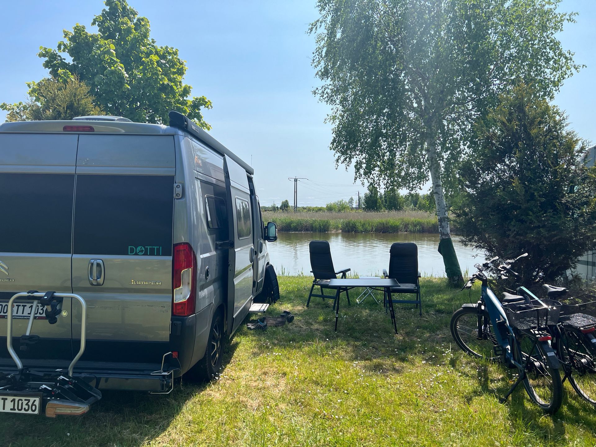 Noch ein wenig durch die Fußgängerzone geschlendert und ein bisschen an der Dotti in der Sonne geduselt, bis wir zur Familie einer ehemaligen Kollegin mit dem Rad 🚲 gefahren sind. Wir haben gut gegessen und nett geplaudert und sitzen jetzt noch auf dem mittlerweile fast vollen Stellplatz bei Dotti. Die Mücken hier sind extra groß und wir werden sicher das Anti-Brumm gebrauchen können in den nächsten Wochen.