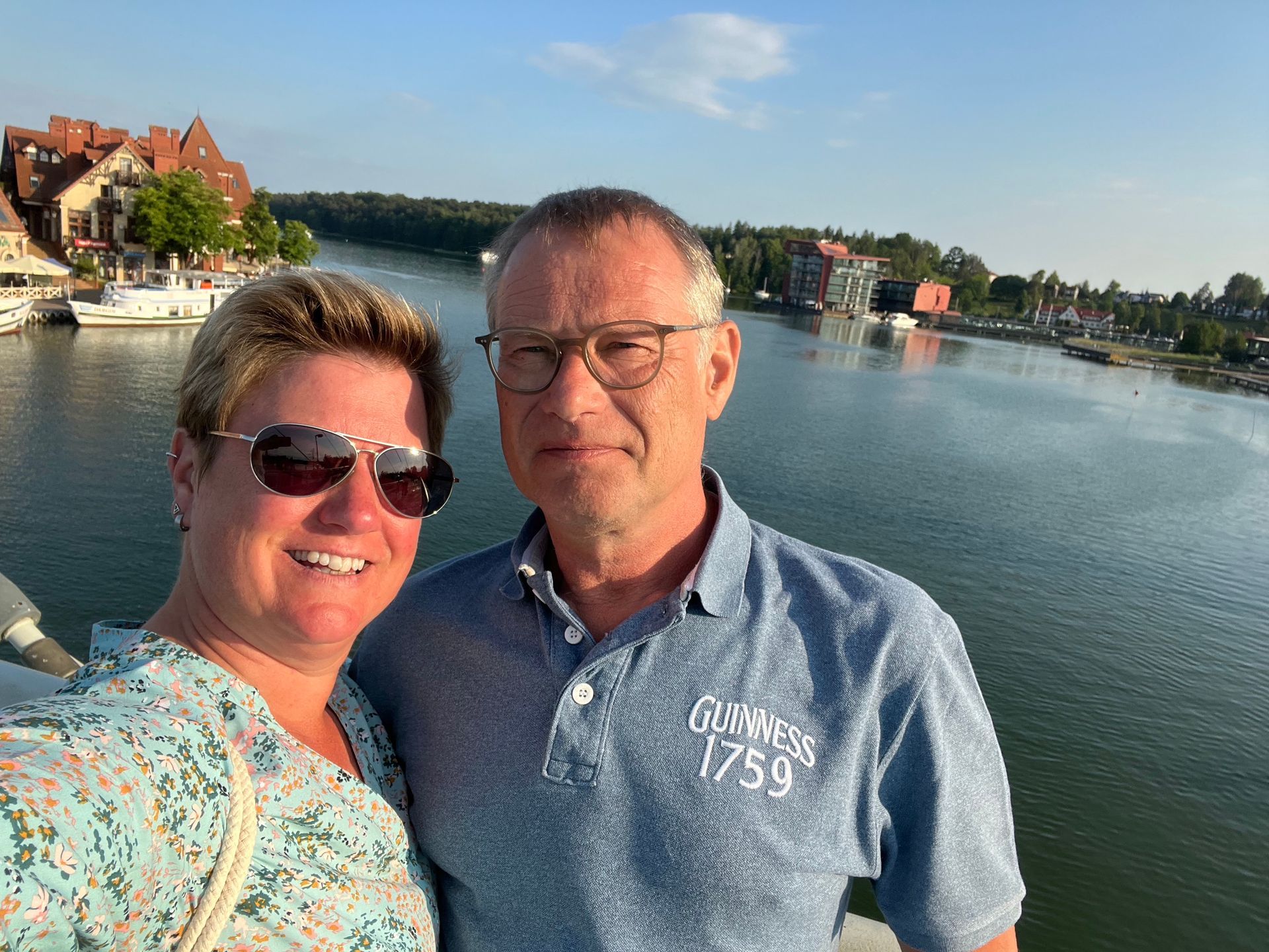 Heute an unserem Hochzeitstag haben wir tatsächlich bis 8.30 geschlafen. Wir mussten ja nicht vom Platz runter, also hatten wir Zeit und konnten die Morgensonne bei einem Kaffee genießen, danach haben wir noch gefrühstückt und sind gegen 11.30 losgefahren zu einer rund 47 Kilometer Fahrradtour. Unterschiedlicher Streckenabschnitte, mal Sand und Schotter, mal glatter Asphalt, mal überschwemmte Rasengittersteine, es war alles dabei. Trotzdem eine schöne Tor mit einem Abstecher nach Koszalin. Der Ort ist jetzt nicht spektakulär, aber es gab ein nettes Lokal, wo wir was trinken konnten.