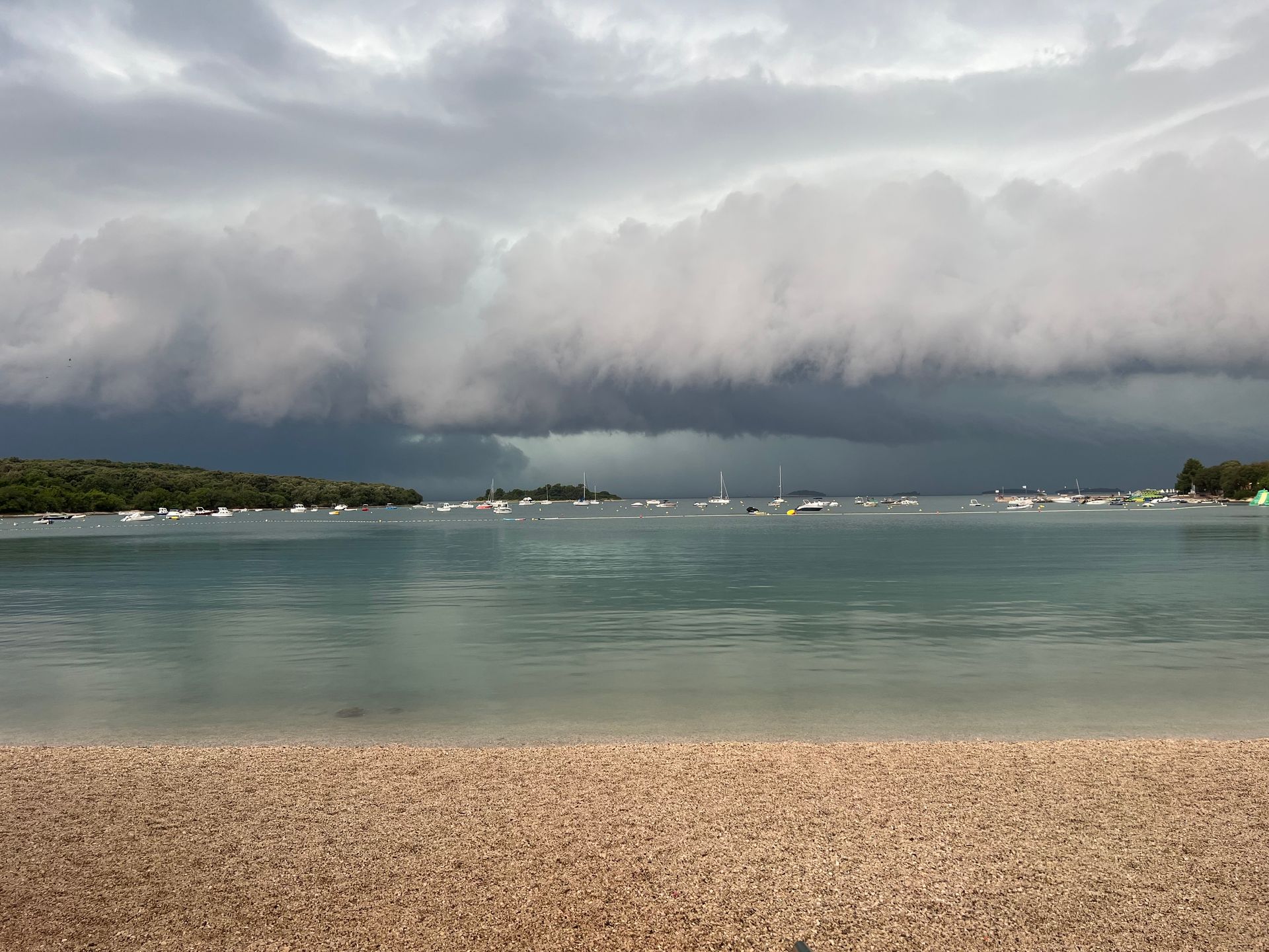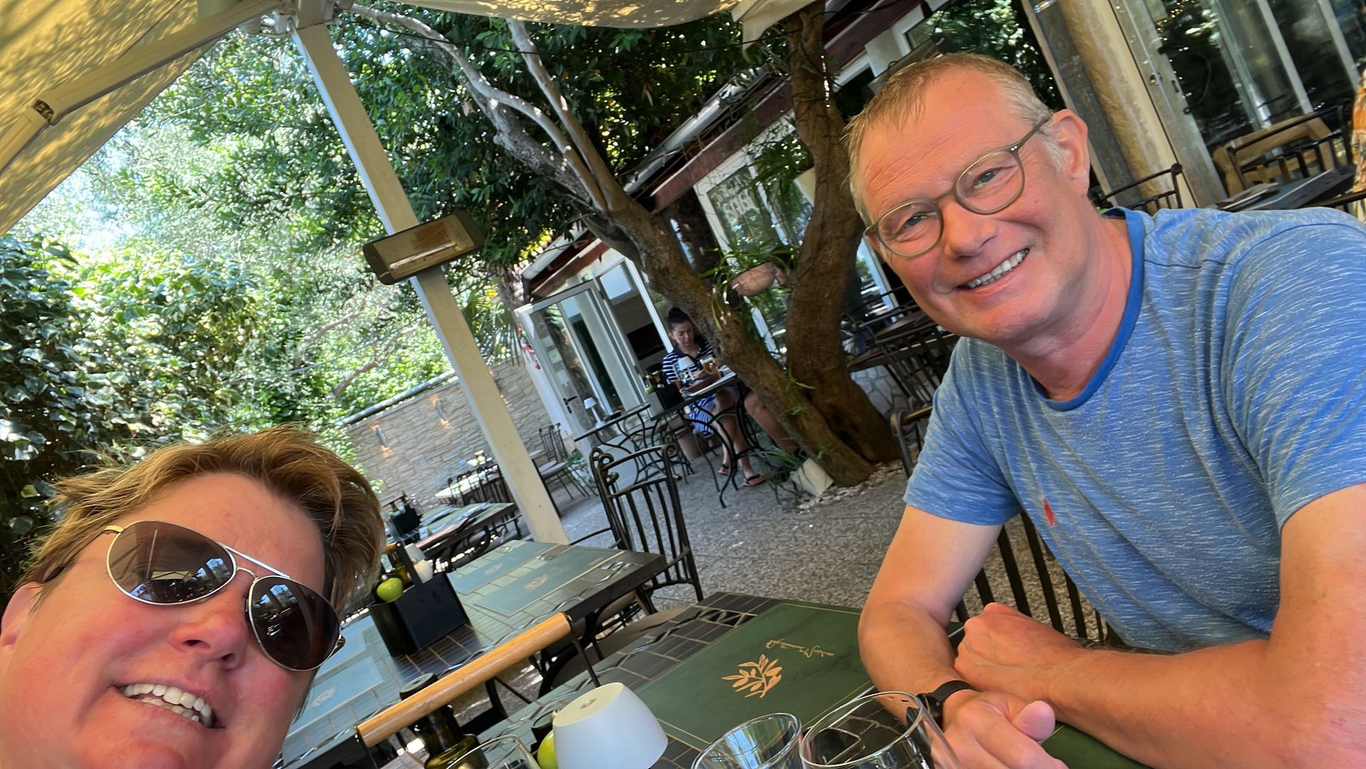 Wir haben dann den Rest des Nachmittags abgehangen, ich war mit sehr, sehr langsamen Schritten zum Restaurant, wo wir essen gehen wollten und habe einen Tisch bestellt für zwei. Schwimmen waren wir natürlich auch, viel erfrischender als gestern. Alles gut soweit, bis auf den Blick in die verschiedenen Wetter-Apps. Auch die Nachbarn hatten nur ein Thema, Sturm- und Regensicherung!! Bis kurz vor 18.00 war alles gut, ein paar Regenschauer und wir hatten für 18.00 den Tisch bestellt. Gut, denn heute Mittag gab es nur drei Reservierungen, aber bei Regen sieht das natürlich anders aus, wenn wenig überdacht ist.