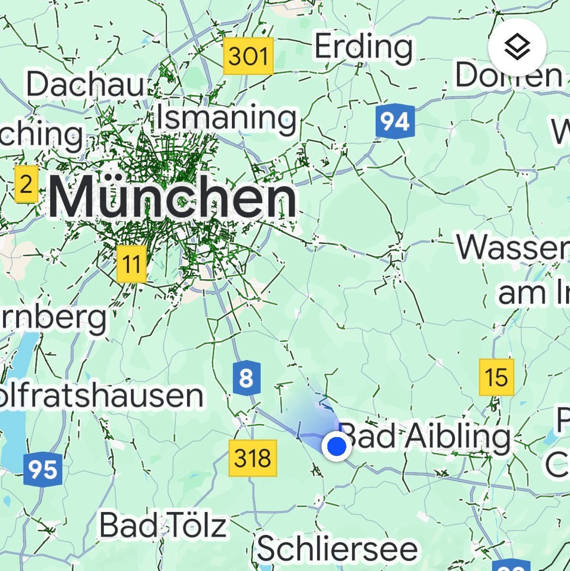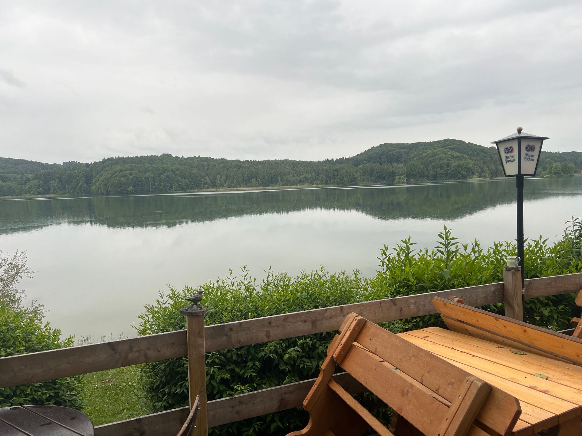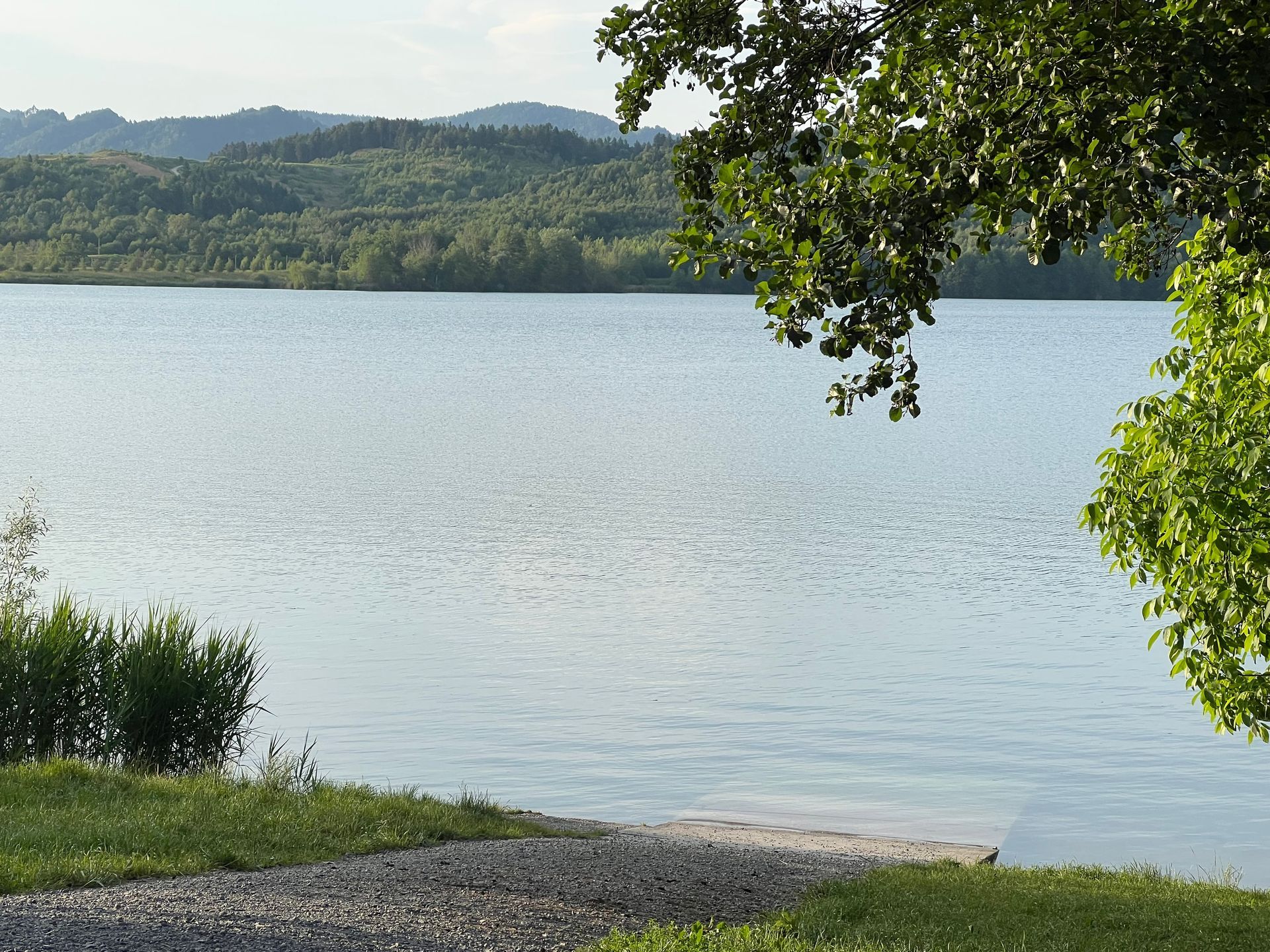 Dann gab es noch eine Strecke mit 15 km zähflüssigem Verkehr in einer Baustelle rund 100 km vor München und einem Stau vor unserem geplanten Zwischenstopp am Chiemsee. Meine Co-Pilotin ist ja die Beste Stellplatzsucherin der Welt, also einen Stellplatz vor dem nächsten Stau gefunden. Direkt an der Autobahn und am Seehammer See zwischen Weyarn und Rosenheim. Da wir schon gegen 16.00 angekommen sind konnten wir uns noch einen schönen Platz suchen. Nicht Wiese, weil es stark geregnet hatte, sondern Schotter. Wir haben die Pole-Position und können sehen, wer mit welchem WoMo ankommt 😁.