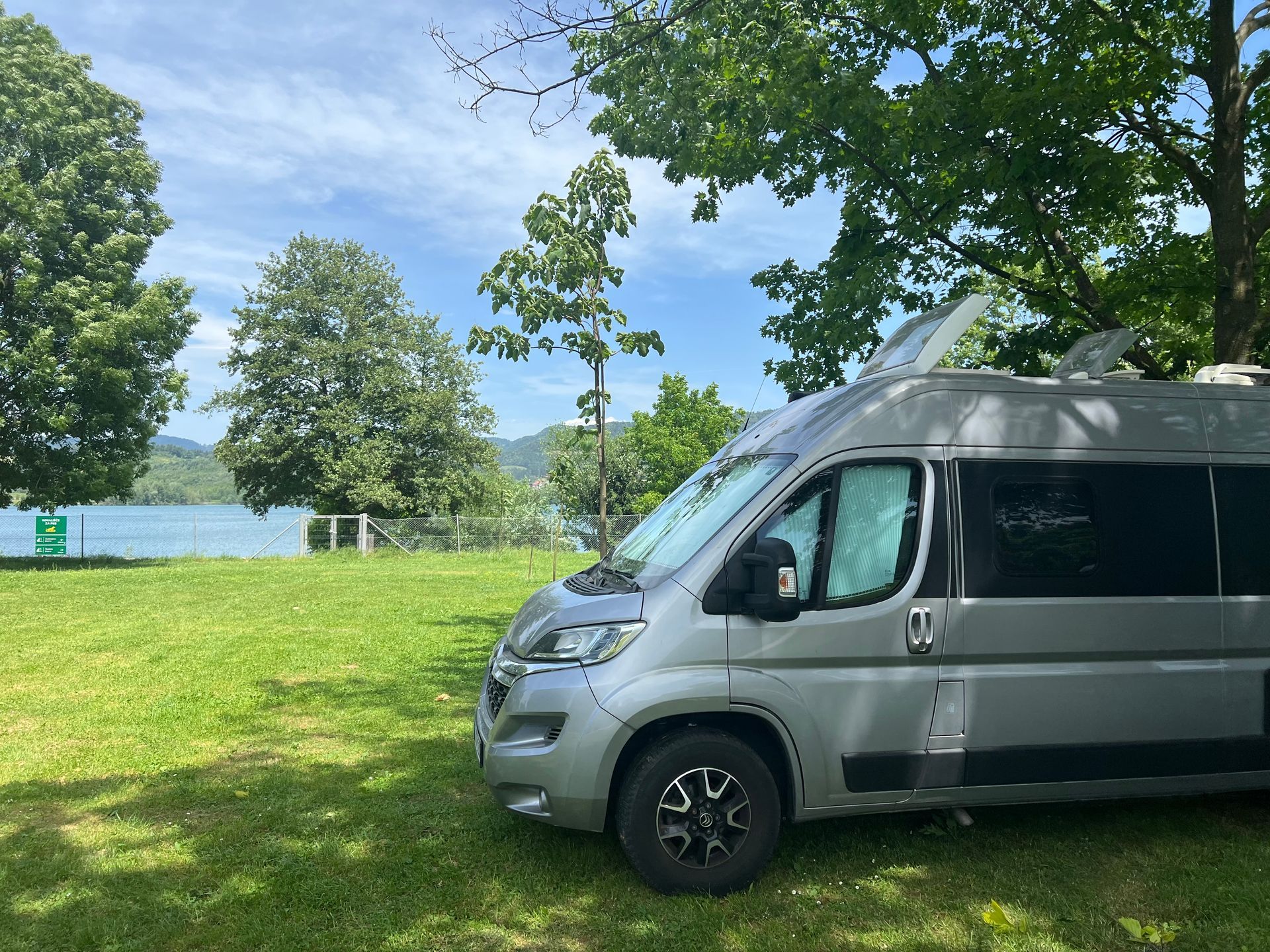 Heute war ein eher ruhiger Tag. Wir sind gegen 12.30 hier am See in Velenje angekommen und haben und einen schönen Schattenplatz ausgesucht, nicht in erster Reihe, aber wenn uns keiner die Sicht versperrt, ist alles gut ;-) Der Schattenplatz war uns wichtiger.