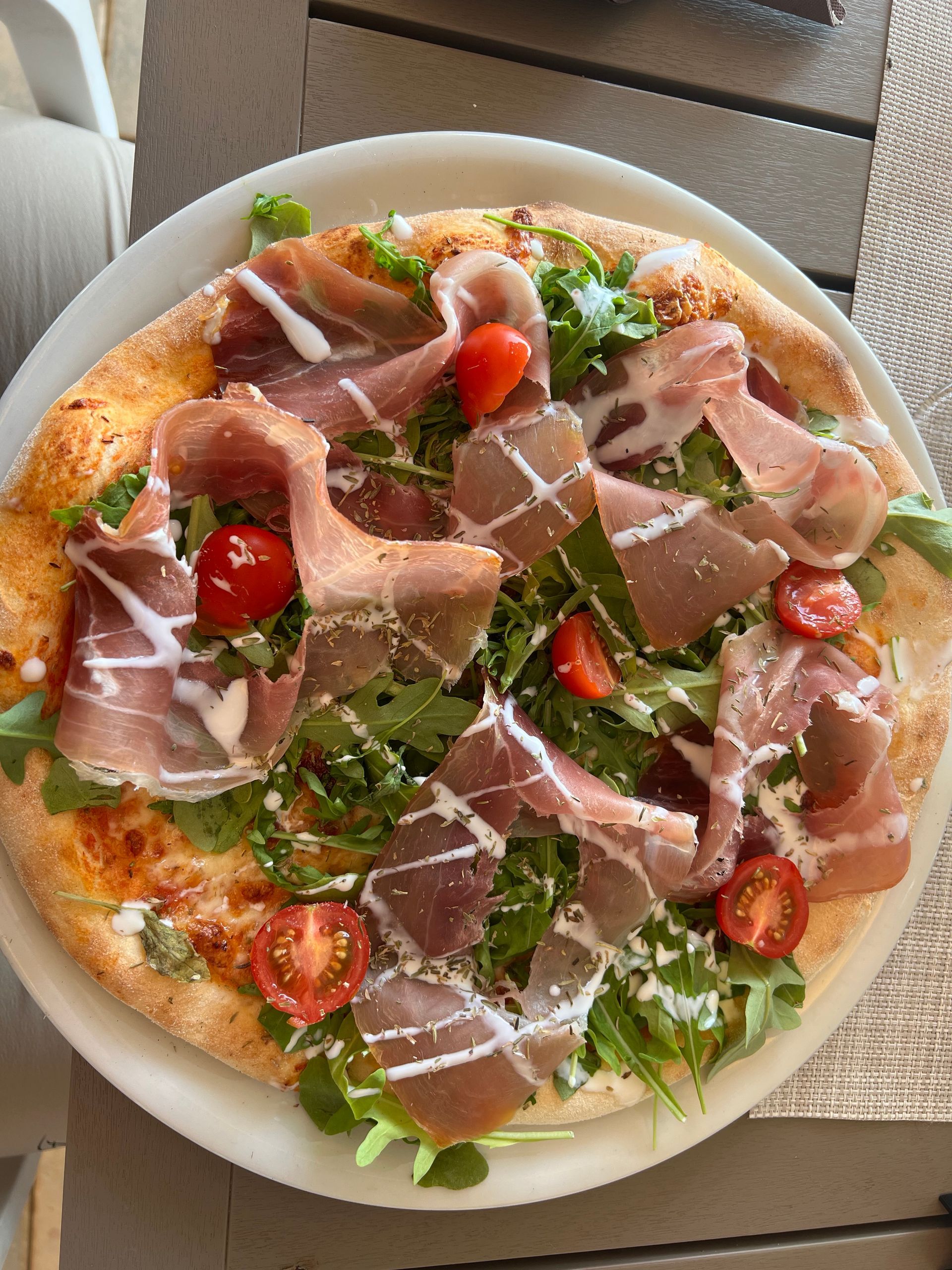 Weil es heute Abend eine große Hochzeit mit ganz vielen Personen gibt und man uns für heute Abend keinen Tisch hier im Restaurant reservieren konnte, haben wir Mittags gegen 13.00 schon dort gegessen. Es gab für mich den Besten Ceasar Salad, den ich bisher gegessen habe und für Juliane wieder Pizza, diesmal in der weißen Variante mit Lachs, auch hervorragend!