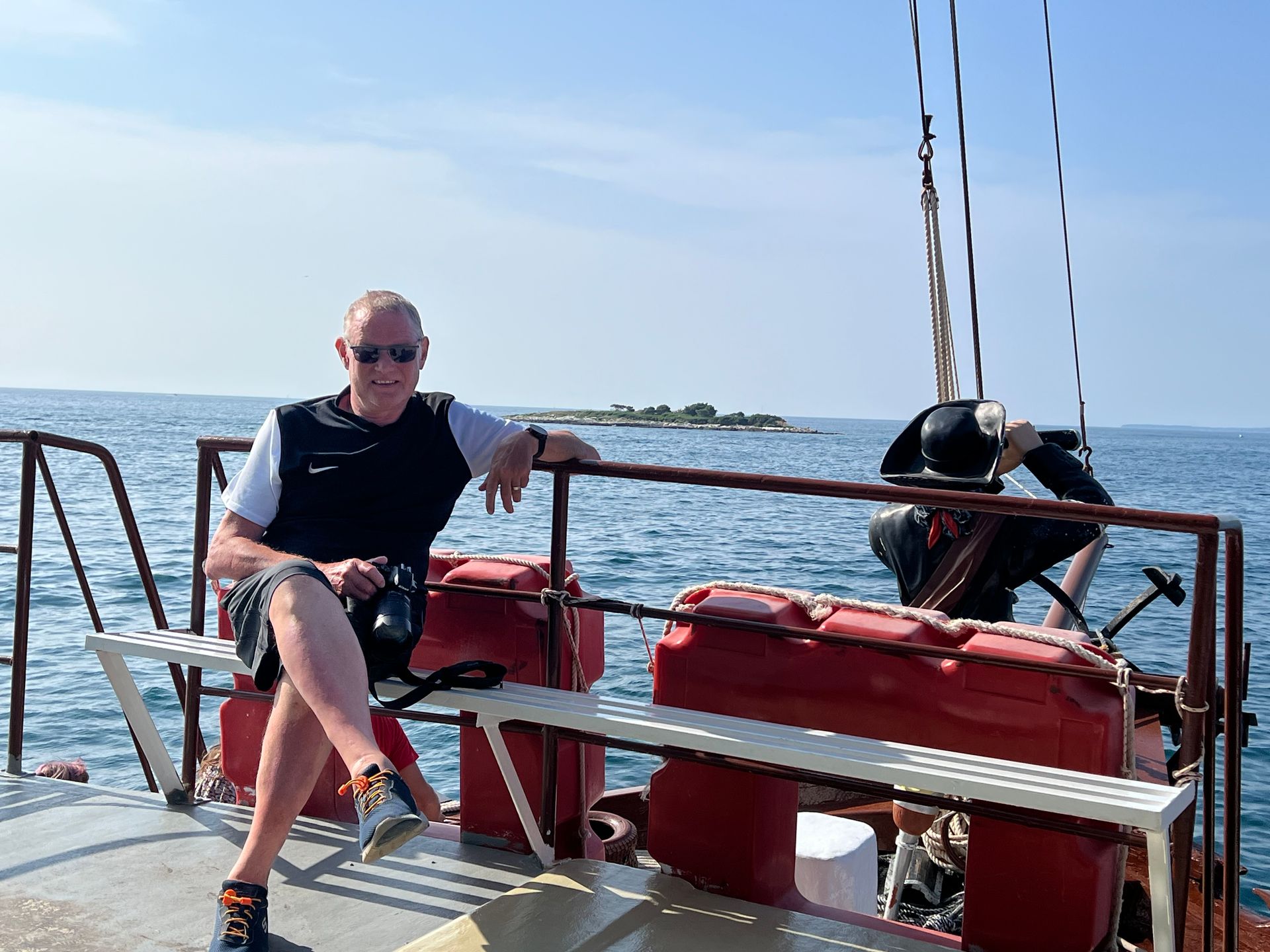 Heute komme ich erst spät dazu zu schreiben. Wir haben uns um 7.00 mit dem Wecker wecken lassen und wurden gegen 8.10 Uhr am Campingplatz abgeholt nach Novigrad. Dort ging unsere Schiffstour dann los über Porec, Vrsar den Limfjord nach Rovinj. In Porec haben wir nur noch weitere Passagiere aufgenommen und in Vrsar eine etwa einstündige Pause eingelegt. Dann weiter über den Limfjord und die Piratenhöhle (kennen wir schon) nach Rovinj. Ich könnte schon fast sagen unsere Lieblingsstadt in Kroatien. Dort hatten wir dann zwei Stunden Aufenthalt und die Zeit haben wir in unserer Lieblingsbar an der Hafeneinfahrt verbracht. Dann noch einmal 15 Minuten Fußweg und wir waren wieder am Schiff. Wir haben uns sowohl auf dem Hin- als auch auf dem Rückweg nett mit anderen Reisenden unterhalten, sodass die Zeit ganz gut verging.