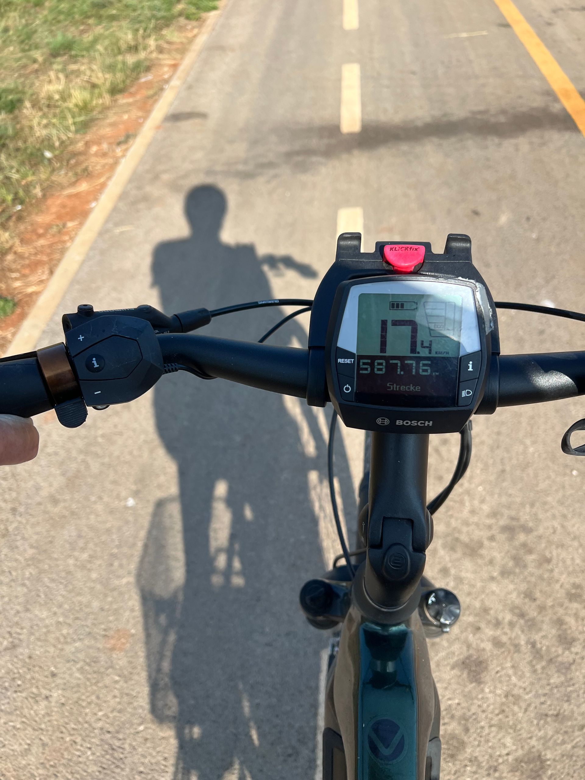 Heute war zumindest für mich ein schlimmer Tag. Wir hatten uns eine 45 Kilometer-Tour ausgesucht, eigentlich kein Problem mit E-Bikes und flacher Strecke. Dummerweise wurden es über 30 Grad und die Strecke verlief wenig im Wald, meist auf freiem Feld, oder auf Nebenstraßen mit Radweg (ohne Schatten), oder noch schlimmer auf Bundesstraßen mit mehr Verkehr. Da wurde es manchmal knapp, wenn wir überholt wurden und Gegenverkehr kam.