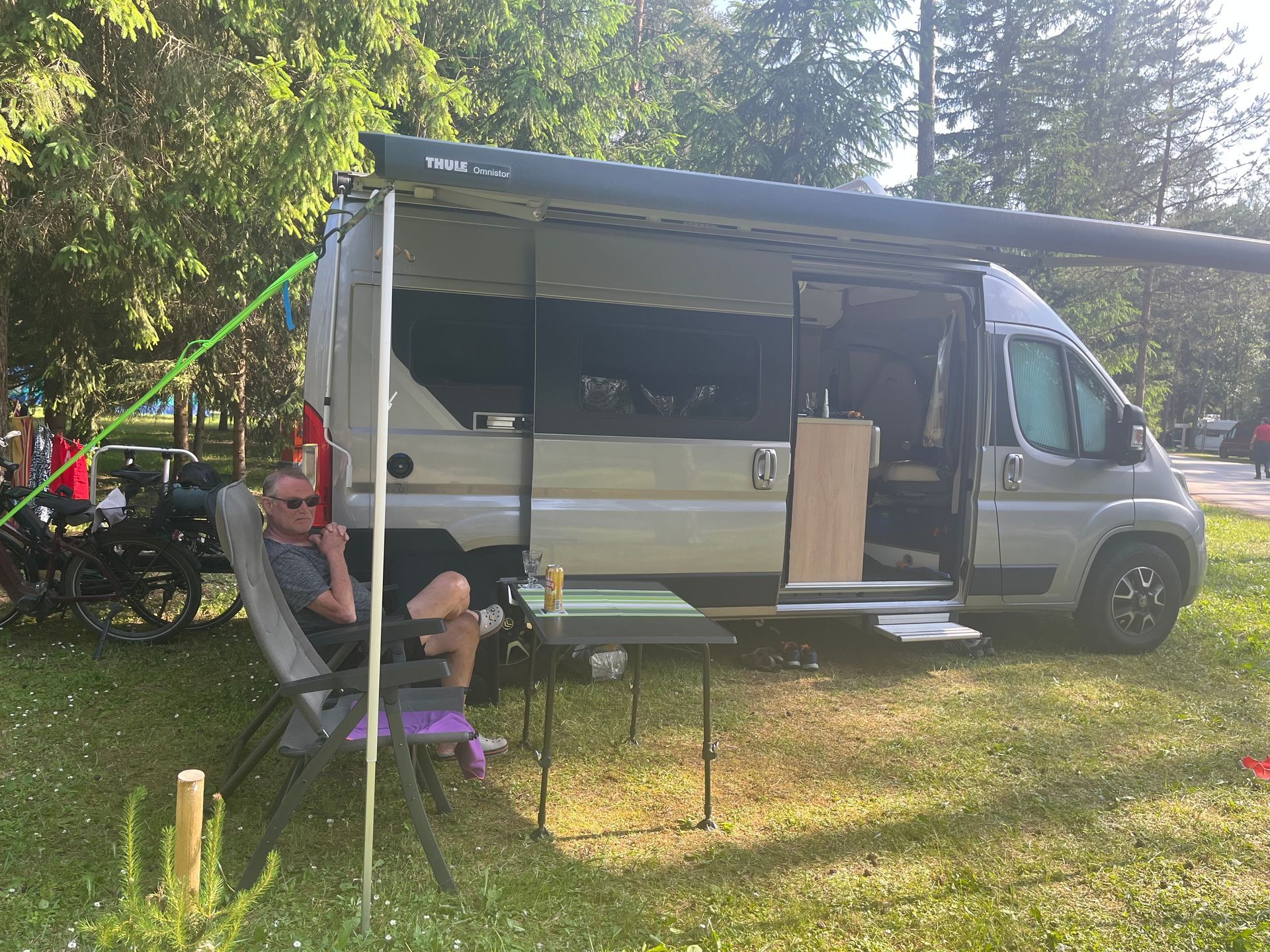 Noch zwei Familien mit zwei Kindern im Bulli direkt bei uns. Ich finde das toll und beim Gespräch mit den Leuten fällt auf, dass alle gut drauf sind!