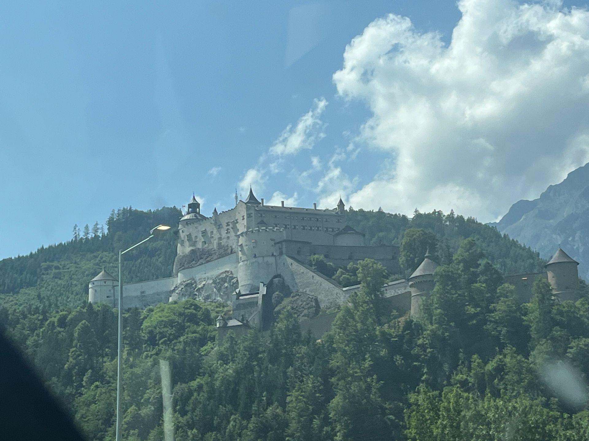 Wir sind gegen 8.00 losgefahren über Salzburg, Bischofshofen, dann über die Bundesstraße, vorbei an Schladming bis Liezen und dann wieder auf die Autobahn. Hinter dem letzten Tunnel Kur vor Graz wurde das Wetter schlagartig besser. Sonne mit ein paar Wolken, vorher nur grauer Himmel und ein bisschen Regen. Die Strecke über die Bundesstraße war trotzdem sehr schön.