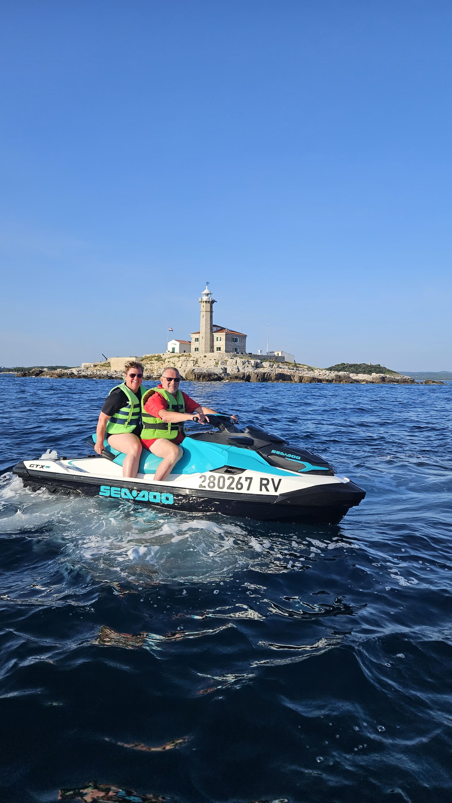 Das Highlight stand ja dann um 19.00 an: Eine Jetski-Safari, geführt, mit möglichen Delphinen und Spaß. Wir sind über eine Stunde lang über das Wasser geheizt, Wir hatten nur den Guide mit seinem Jetski und einen heißes Mädel als Begleitung und uns auf unserem Jetski.